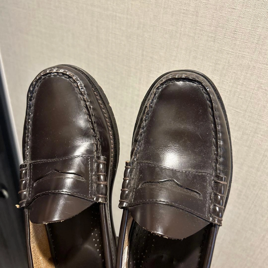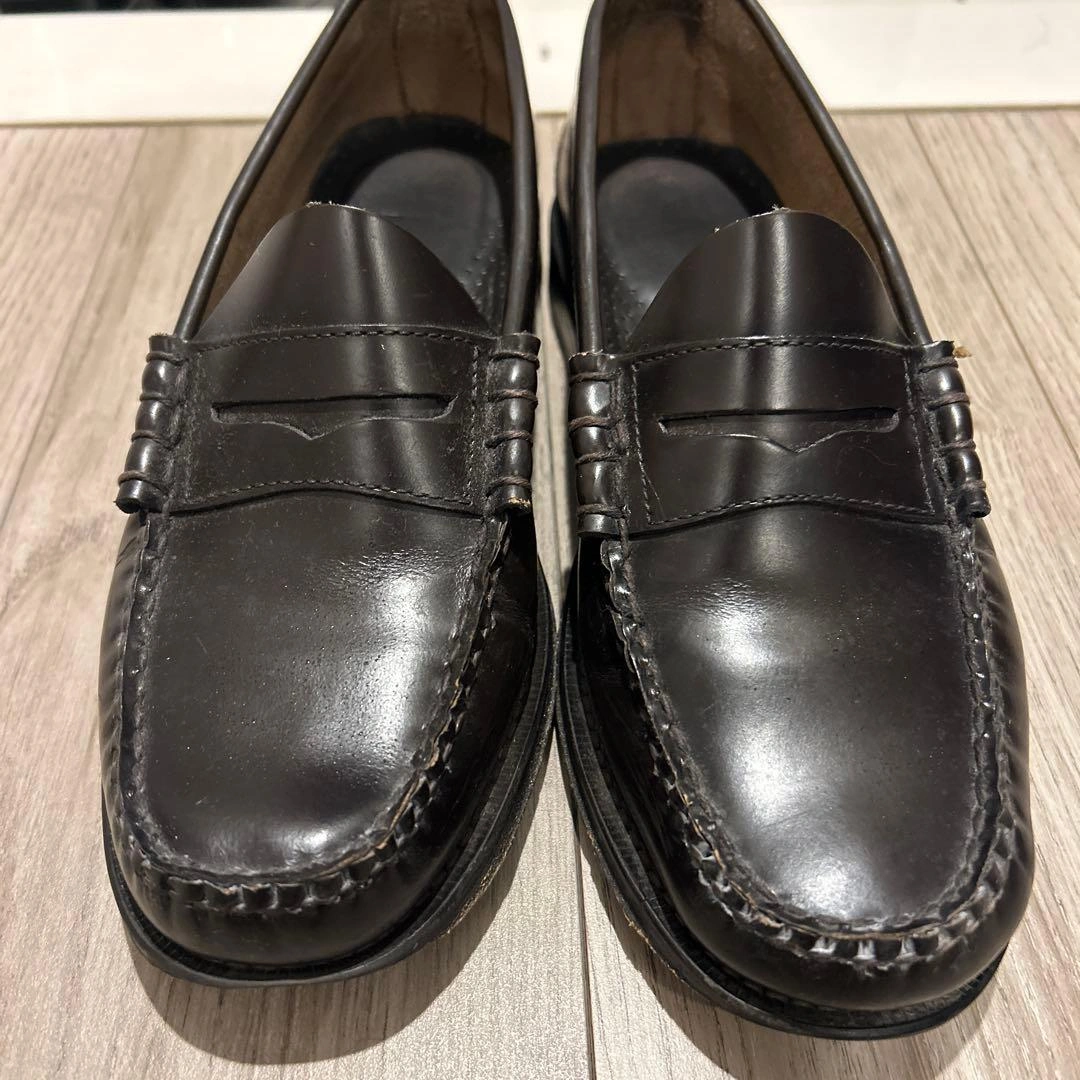 定価39,600円 サイズ6 2/1 G.H. BASSのペニーローファーです。 こちらは『Larson』というモデルになります。 オンオフどちらにも対応可能です。 カラー:チョコレート(ダークブラウン) 写真では黒色に見えますがチョコレート(ダークブラウン)となります。 ※最後の写真の色味が肉眼と近しいです 素材...本革 ローファー種類...コインローファー 多少の値下げ交渉等は受け付けますので、ご連絡お待ちしております