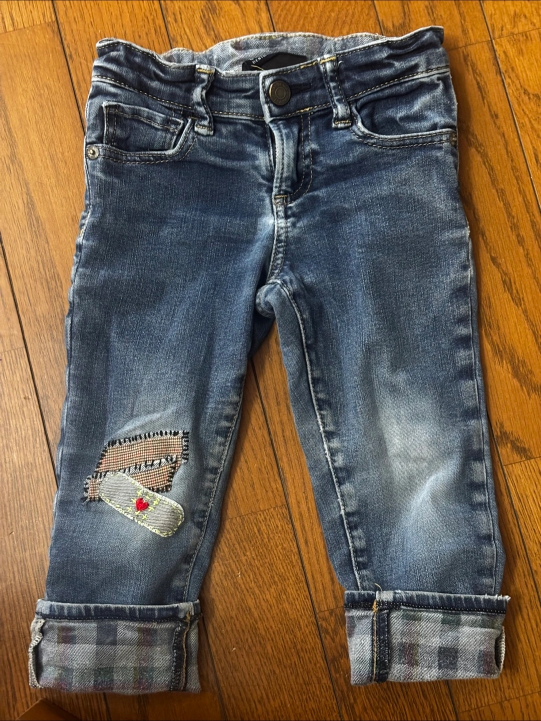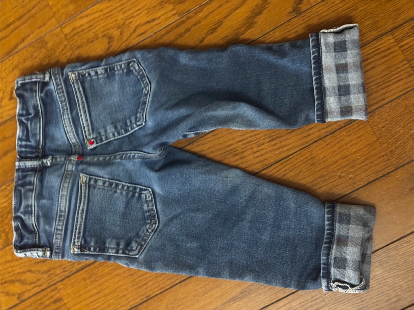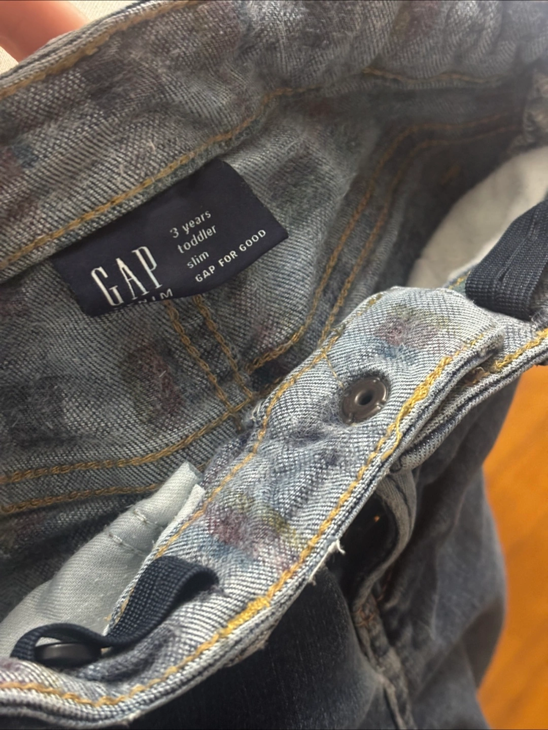 あたたかさ・ブランド:GAP ・サイズ:3 years ・色:デニム ・使用感あり ・膝にパッチ 穴を補修した