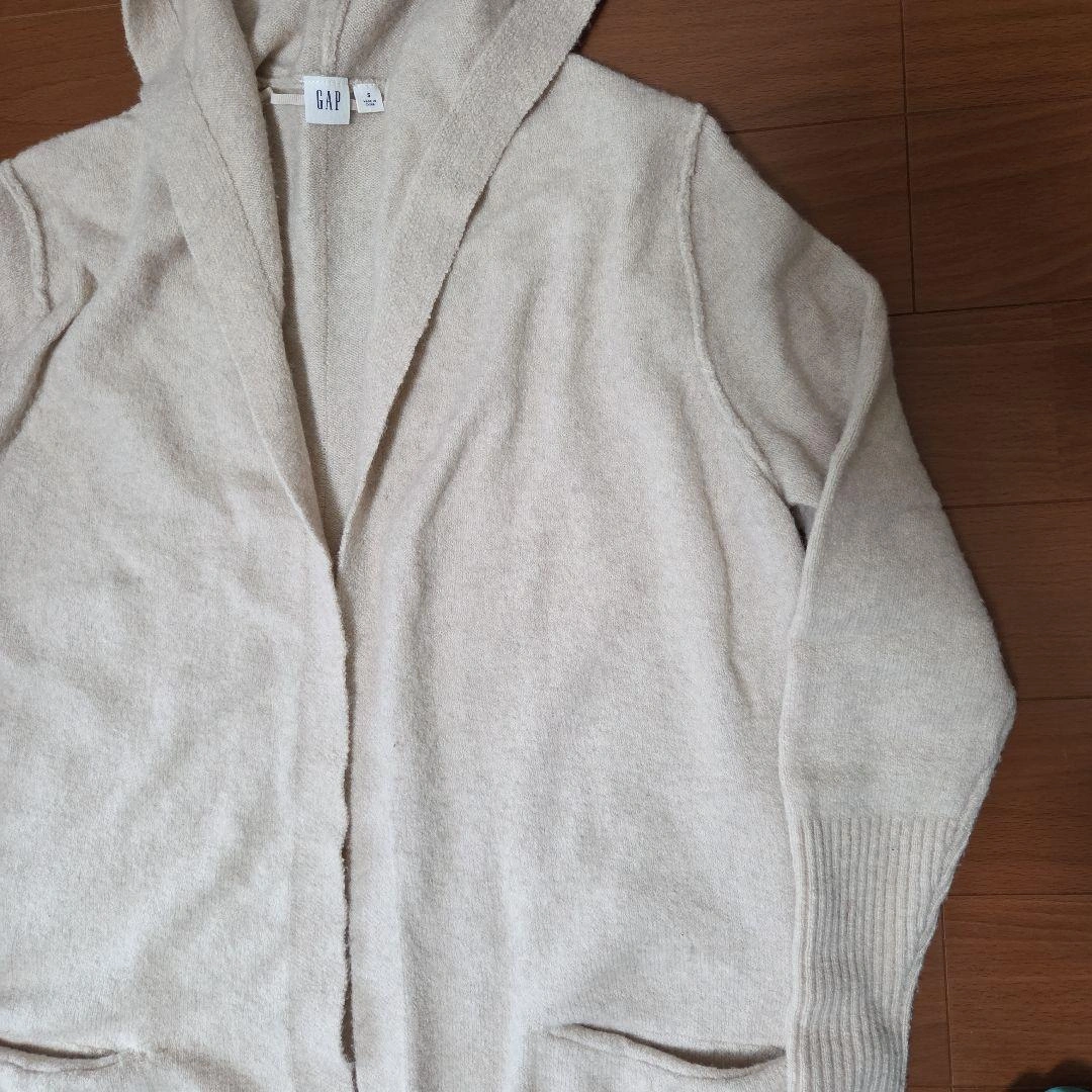 ご覧くださりありがとうございます! 似合わなかったので出品します(>_<) 数時間試着した程度ですので生地の破れや汚れなどありません(>_<)(素人検品ですので写真をよこご覧になってくださいm(_ _)m) サイズは写真2枚目をご確認ください。 素人採寸の為,多少な誤差はご了承ください 。 ふわっふわの生地で手触り良き✨です! Sサイズですが、ロングカーディガンなので長めです! 身長156cm 、50kgですが着幅はゆったりめ、袖は長めでした! タバコは吸いません。 ベージュのフード付きカーディガンです。前面ポケット付きで使い勝手が良いかと思います。 カラー...ベージュ系 素材...ウール, アクリル/レーヨン(化繊) 季節...春夏、秋冬 汚れ・破れ・臭いなど...なし オーバーサイズ 人気ファッションメーカーギャップ GAPのロングニットコート です。 素材は38%ナイロン、36%アクリル、18%ウール、5%アルパカ、3%ポリウレタン。 柔らかい素材で作られており、着心地が良いです。寒い季節でも暖かく、リラックスした時間を過ごせます。 シンプルでありながら洗練されたデザインです。 フード付きでカジュアルな印象を与えつつ、どんなスタイルにも合わせやすいかと思います。 両サイドにはポケットが付いており、実用性も兼ね備えています。小物を収納するのに便利です。 ご希望の方はお気軽にご連絡ください。