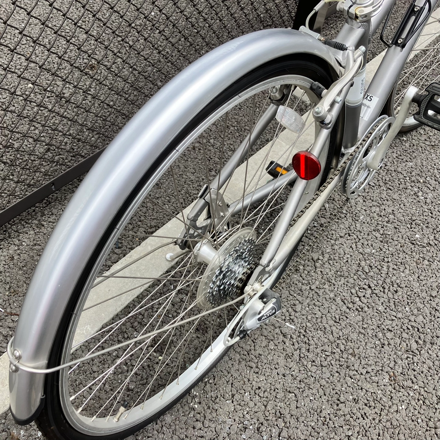 軽量なアルミフレームのクロスバイク。10年ほど前に購入、1〜2回試乗した後、乗らずに室内で長期保管してあったものです。 なのでブレーキ、タイヤ等の部品の消耗はほぼ見当たりません。フェンダー付きなので通勤通学などに向いてます。 フレームサイズ: 380mm XS タイヤサイズ:700x35c ブレーキ前後効きます。 前後パンクなし。 ギアは1x7 タイヤ山あります。 書類あります。 ※出品はあくまで中古品です。使用に伴う小傷や錆、汚れあるものと思ってください。神経質な方は購入をお控えください。ポジション、変速ギア、ブレーキ、各ワイヤー類等々細かな調整は自転車専門店で行ってください。消耗品はご自身の判断で交換してください。個人出品の現状品(現物優先)です。 お店のような保証、返品、交換、修理、返金その他一切のアフターサービスはありません。 川崎市宮前区より出品 最寄りコンビニ(駅近く)にて 引き取り限定です。 I cannot ship this bicycle #GIANT #BIANCHI #TREK #GIOS #ルイガノ
