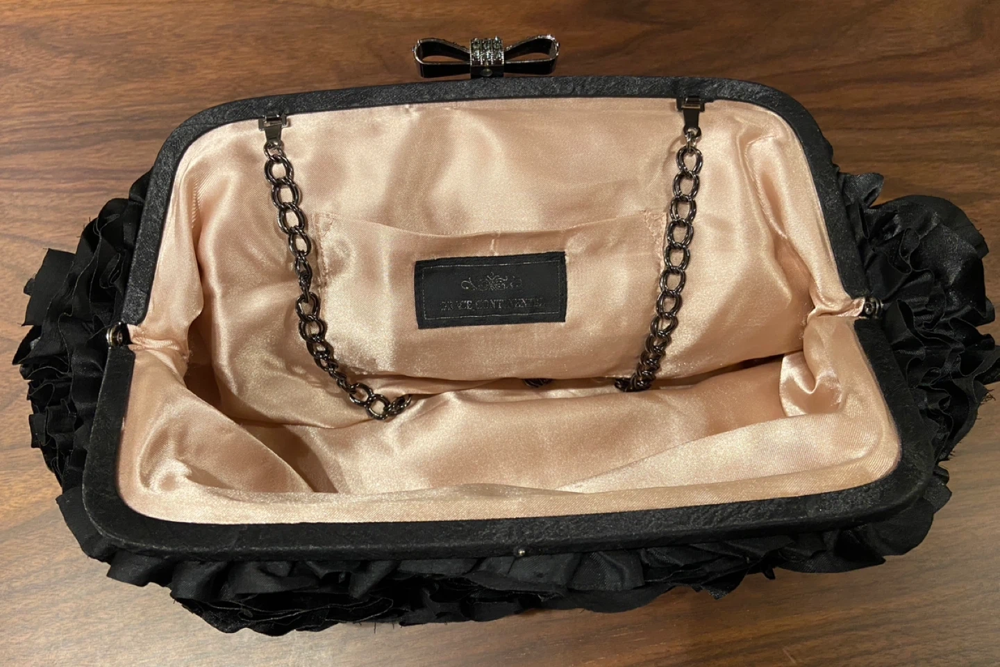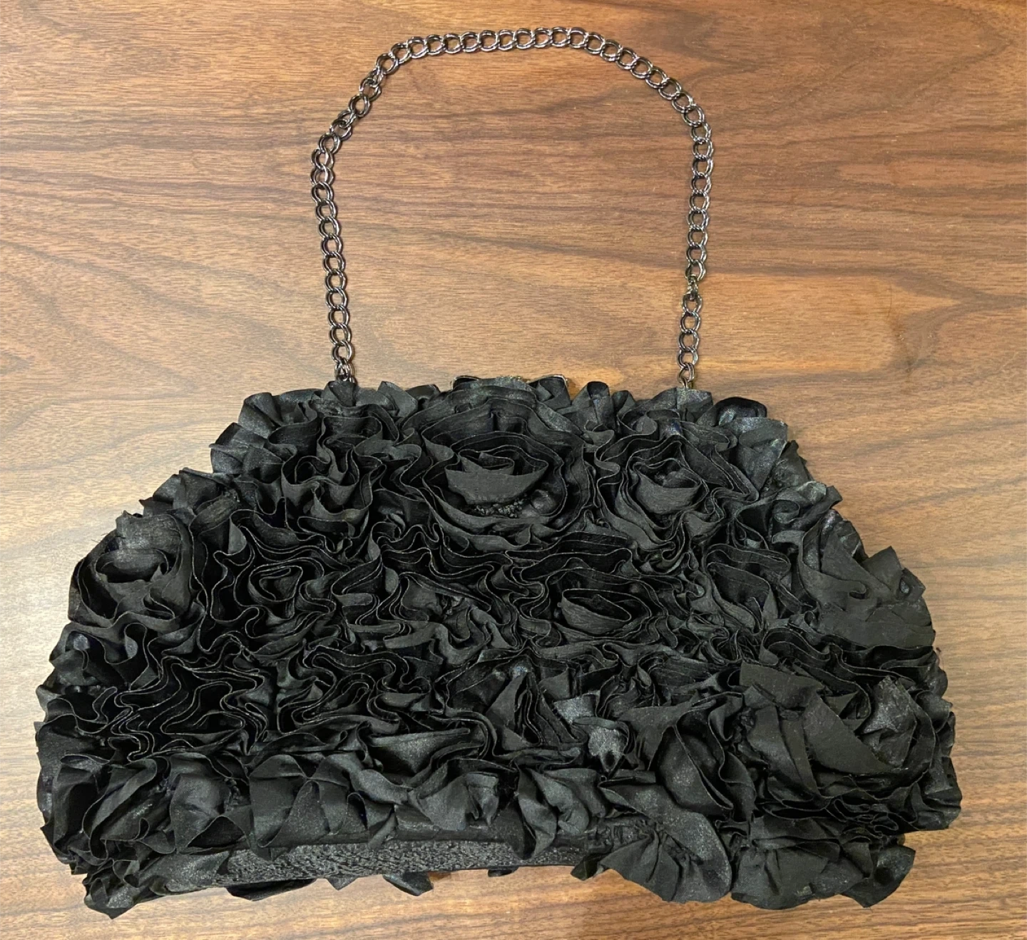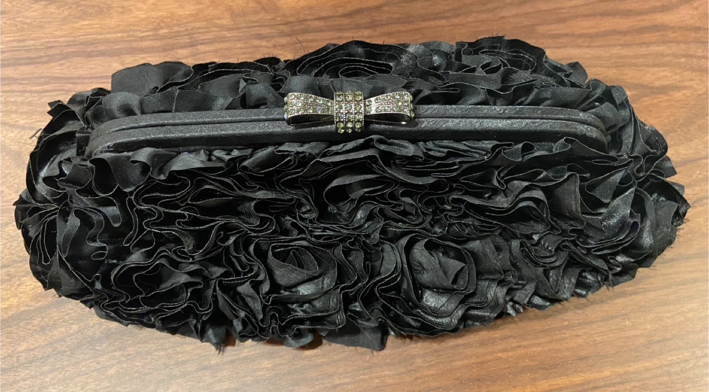 フリルが華やかなブラックのパーティーバッグです。 チェーンを出し入れできるので、ショルダー&クラッチバッグとして使い分けできます。 結婚式や二次会などのフォーマルなシーンにぴったりです。 3回程使用したきりクローゼットに眠っておりました。 しばらく使う機会がないため出品いたします。 ※返品は受け付けておりません。中古品であることをご了承の上お買い上げください。 ※他商品とセット購入の場合は値引きいたします。お気軽にメッセージください(^^)