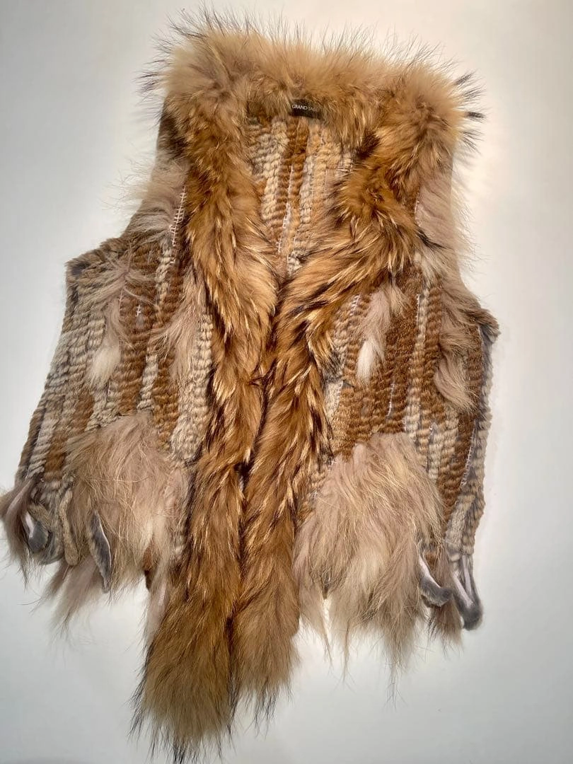 GRAND TABLE のとても柔らかいラビット・ラクーンファー ジレです。 凝ったデザインで、オシャレで華やかに着こなせます。軽いのに暖かいです。 カラー : ベージュ 系 サイズ : フリー 肩幅 : 33cm 身幅 : 46.5cm 着丈 : 約50~60cm 素材 : ラビット チャイニーズラクーン お取り引き場所は、ノット東京(新宿)、大江戸線・西新宿五丁目駅、都営新宿線・初台駅東口のいずれかでお願いしたいです。 日時のご希望2択ほどと共にご連絡をお願いします。