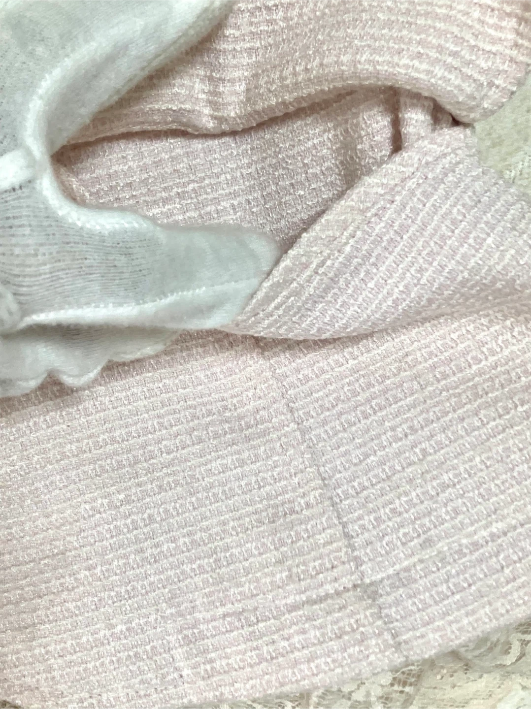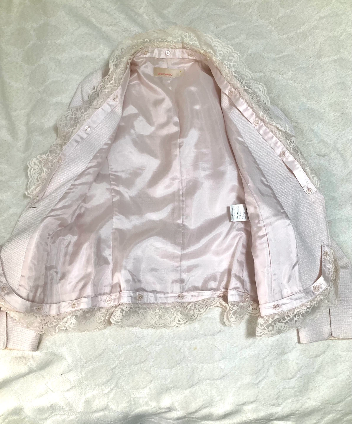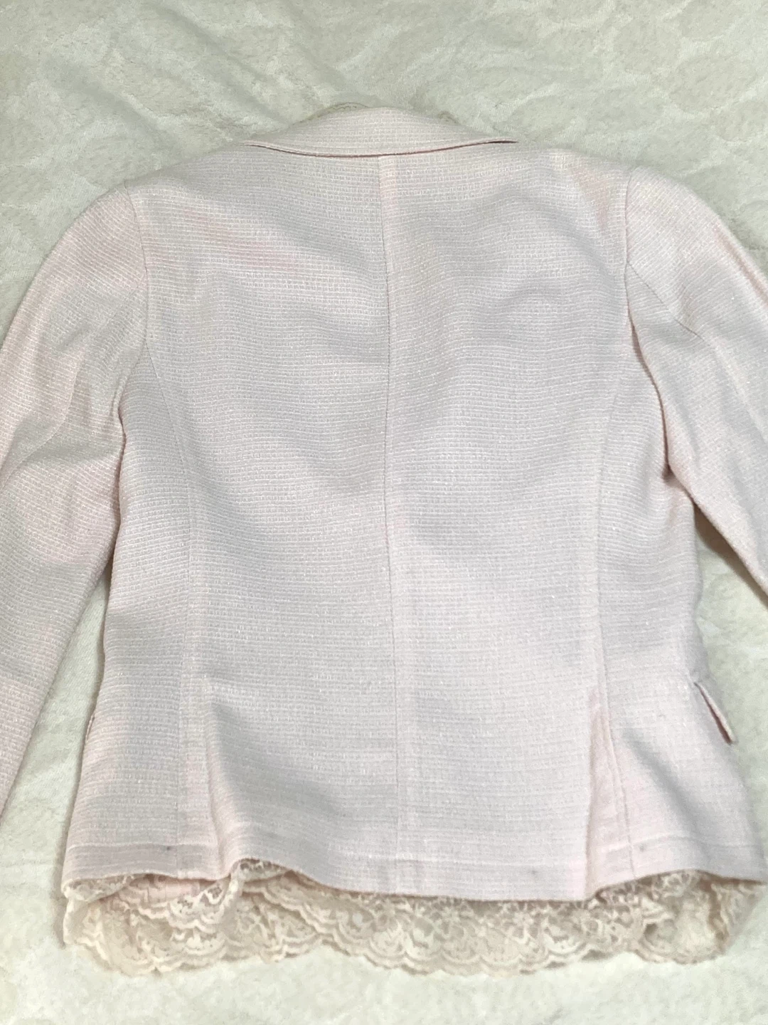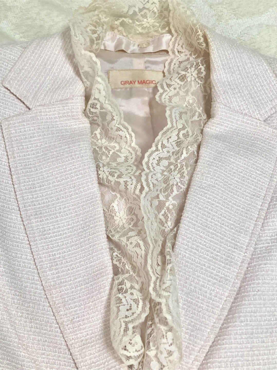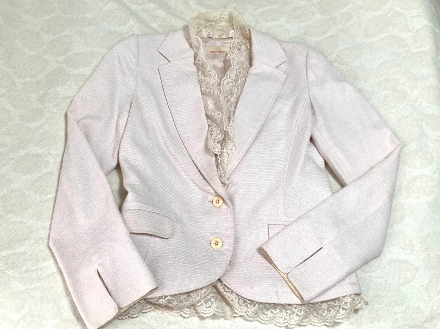 GRAY MAGIC ラメ入りピンク系レースリボン付きテーラードジャケット レースリボン取り外し可能: セレモニー:フォーマル