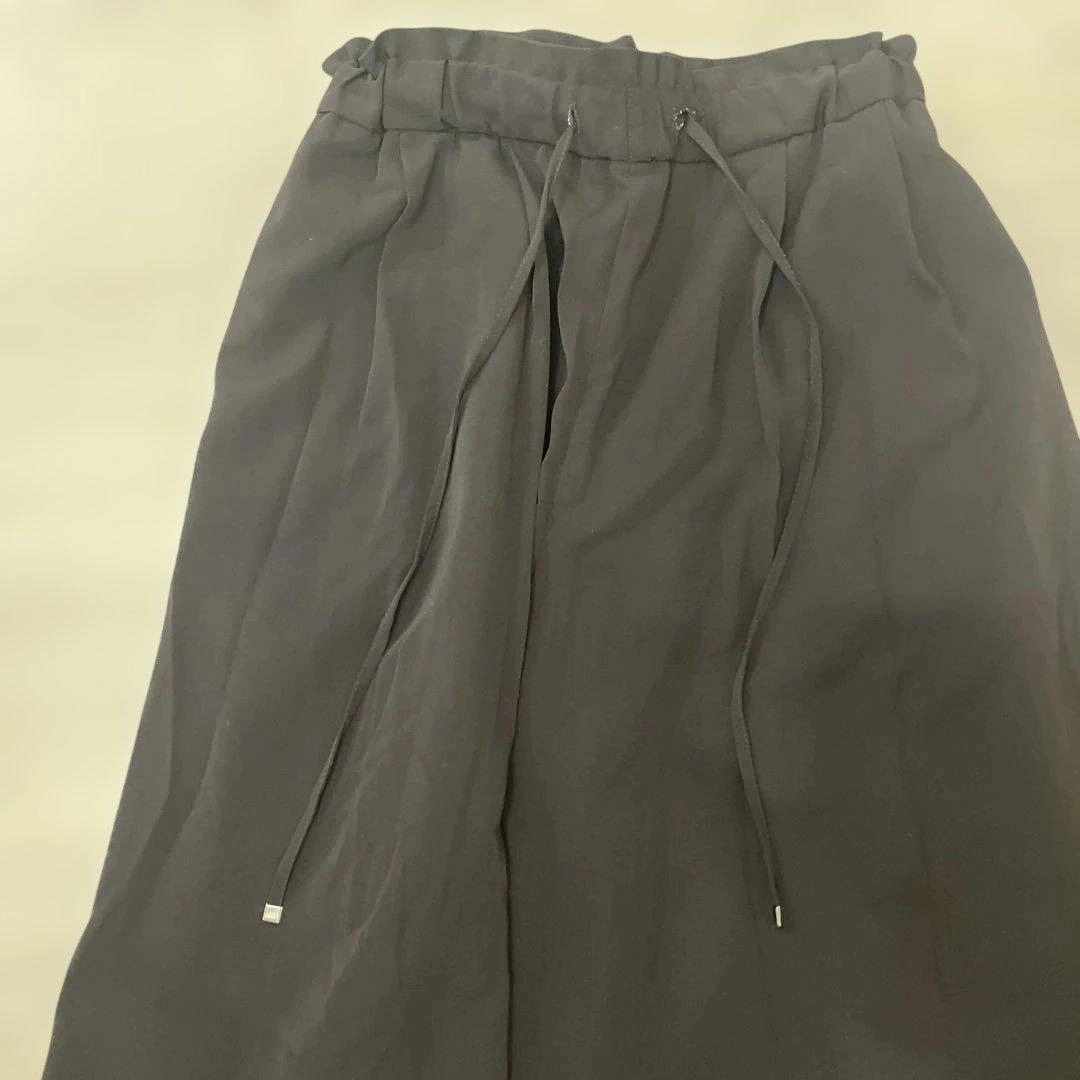 GUブラック ワイドパンツ ウエストドローストリング