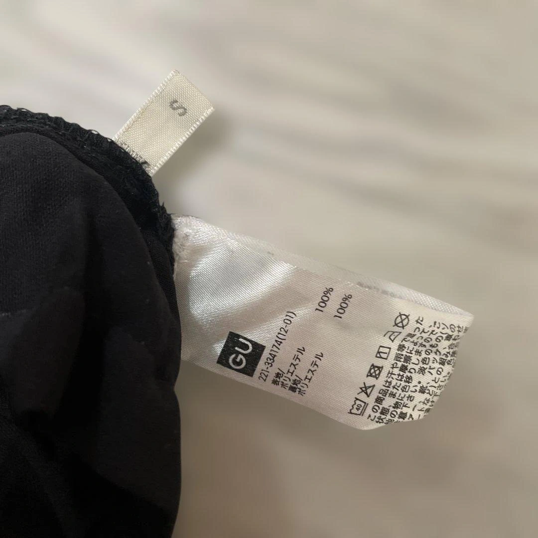 GUブラックワイドパンツです。ウエストドローストリング付き。快適なフィット感です。 - 色: ブラック - デザイン: ウエストドローストリング - 素材: ポリエステル、裏地付き - スタイル: ワイドパンツ 中古品の為ご理解の程よろしくお願いいたします。ご覧いただきありがとうございます。