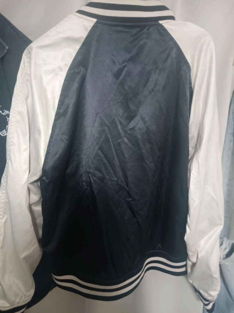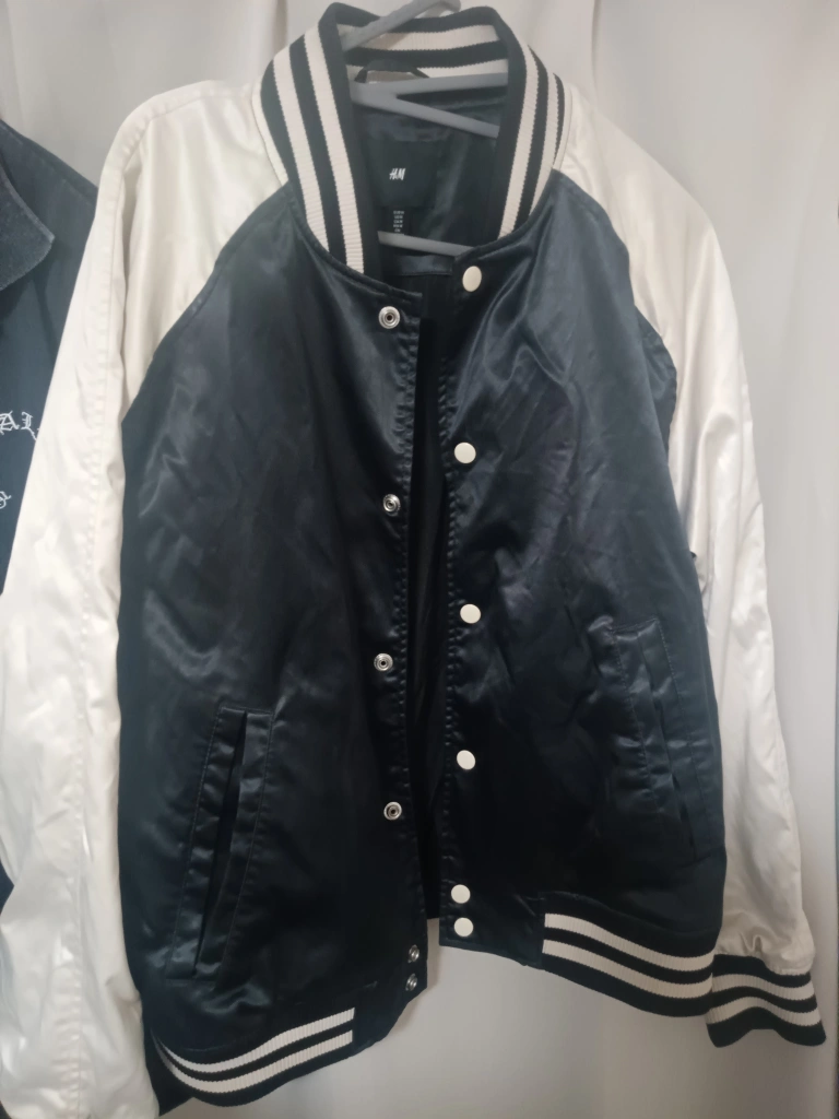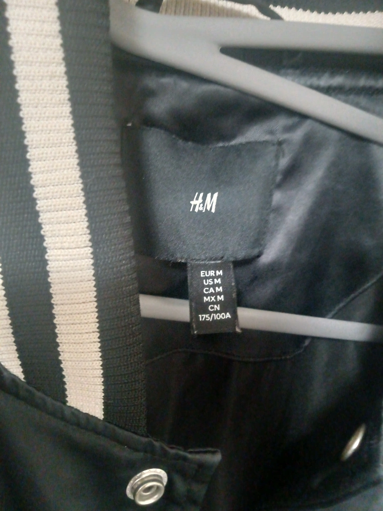 あたたか さH&Mのスタジャンです 【情報】 ブランド:エイチアンドエム サイズ:M(EUR M, US M, CA M, CN 175/100A) カラー:ブラック、ホワイト 【状 態】 使用感は、脇下にすこし毛束ありますが目立ちません。 中古品であることご了承ください