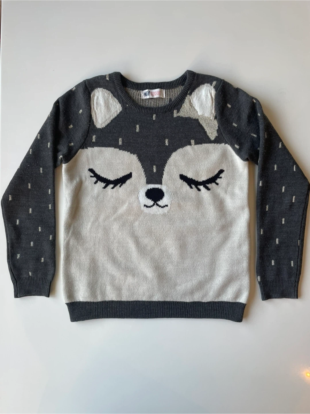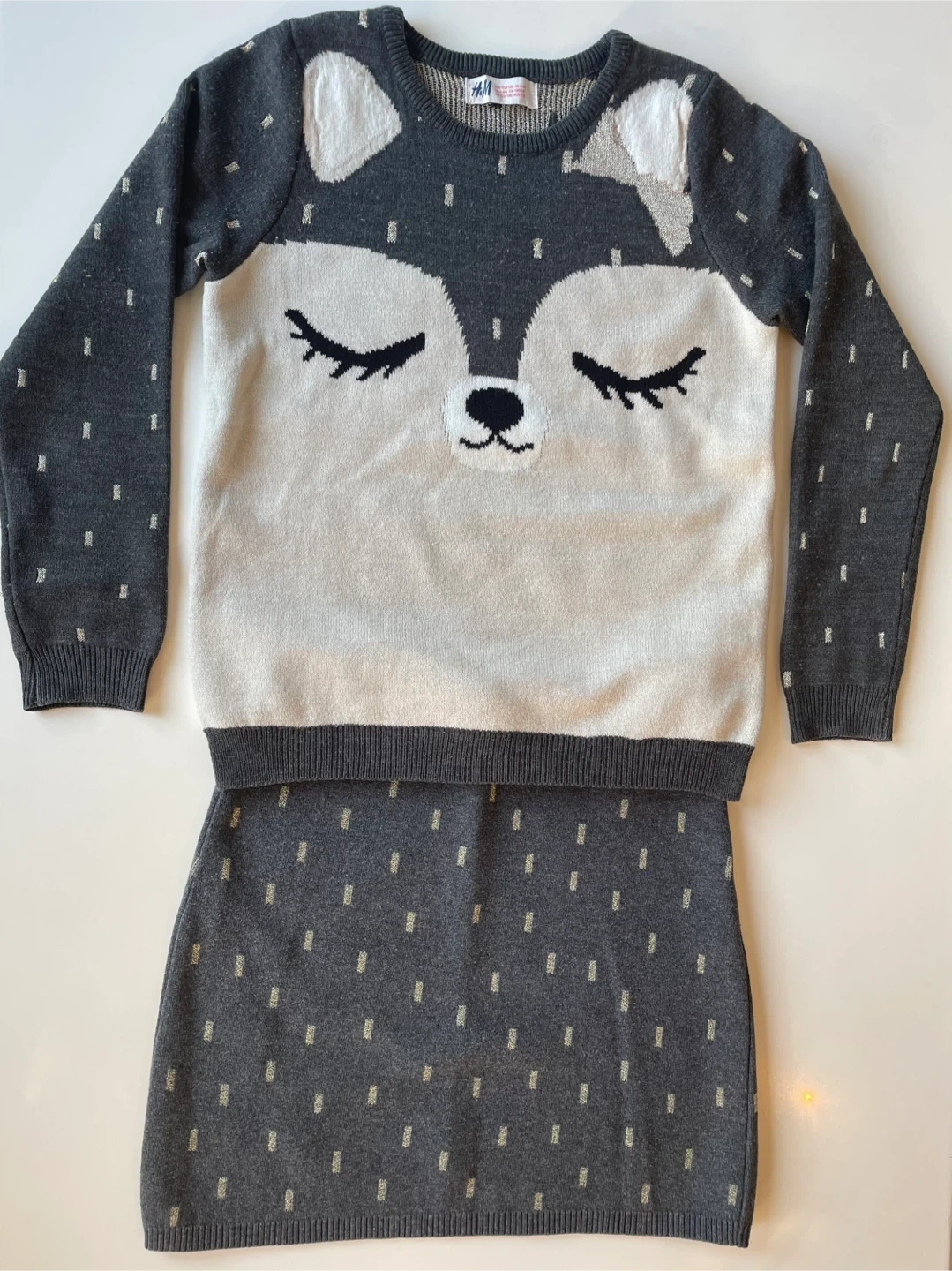 【H&M ニットワンピース グレー キツネ柄】キッズ 女の子