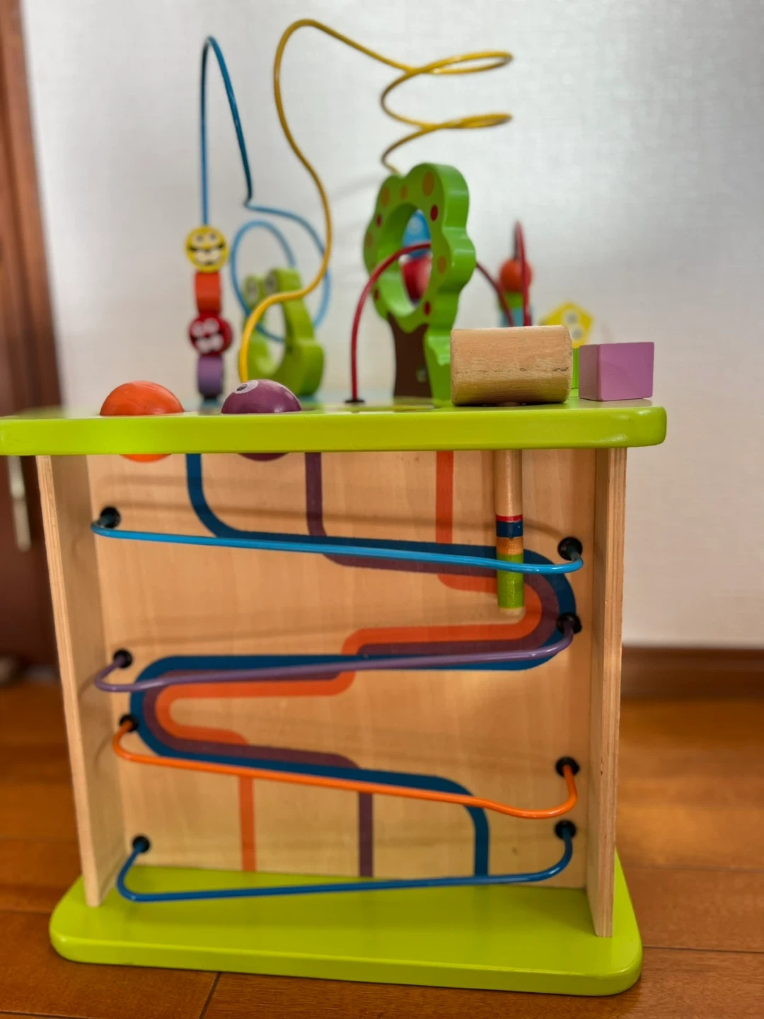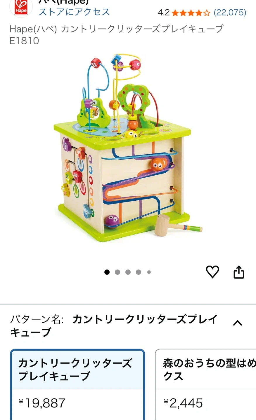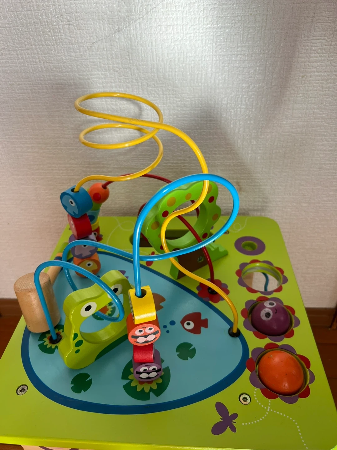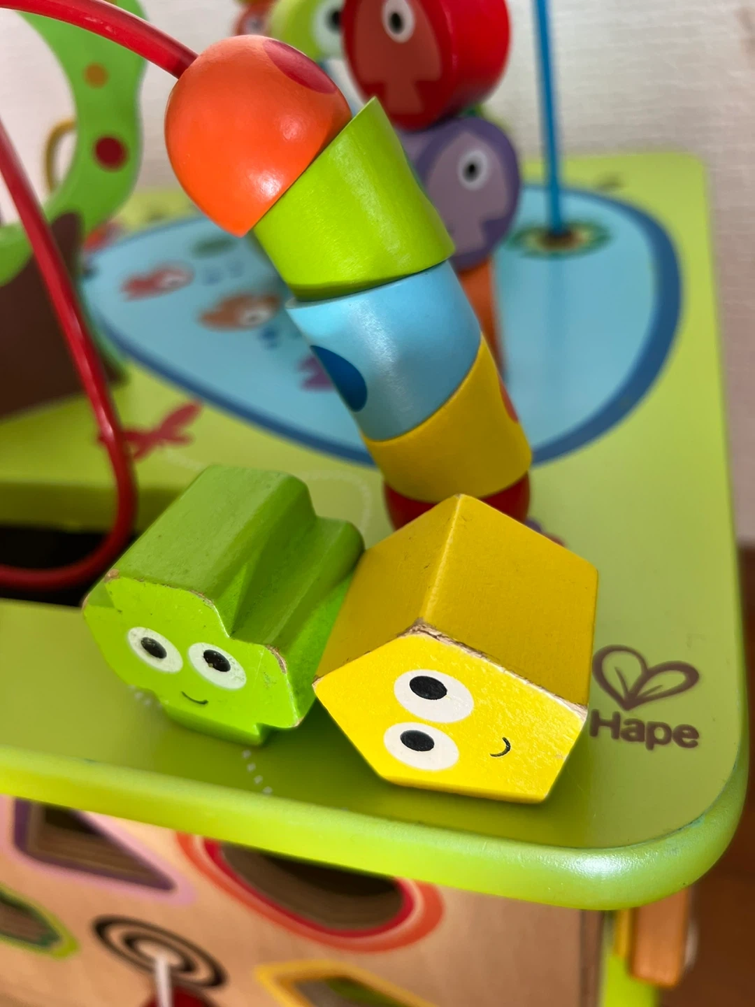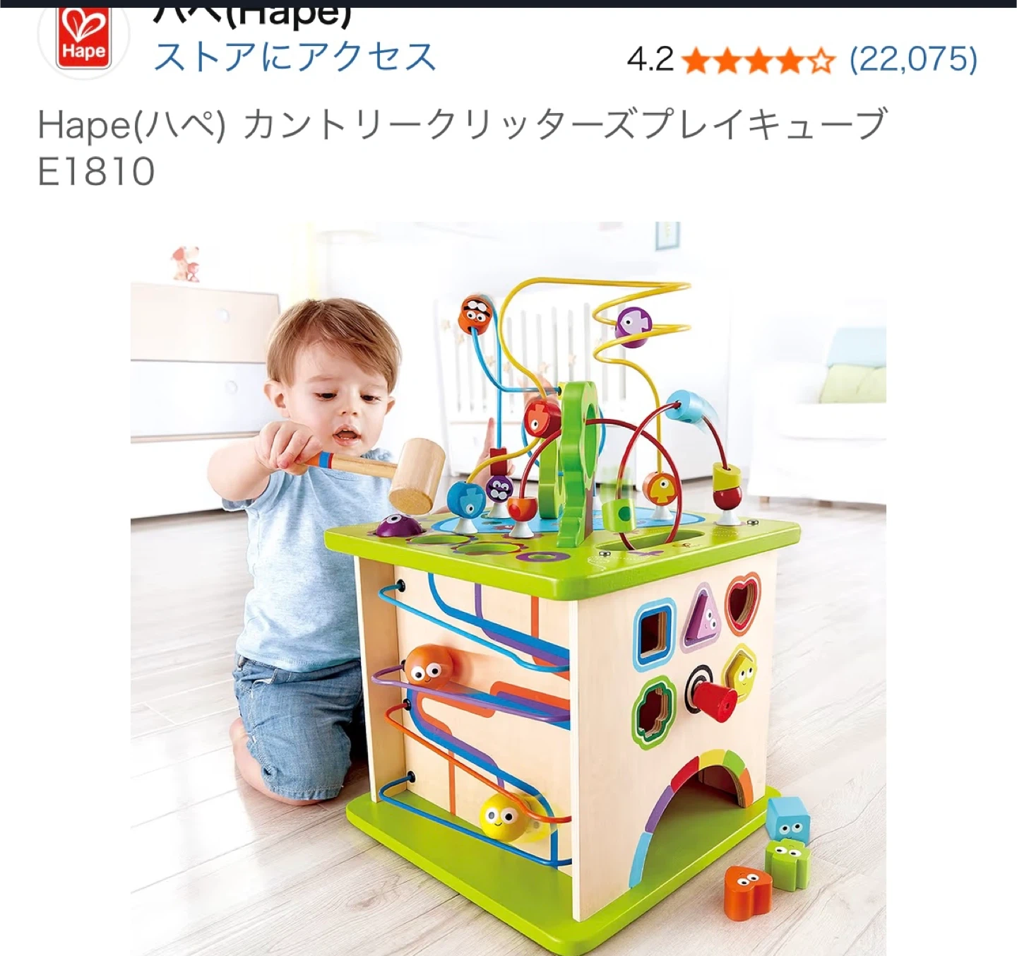 ドイツの老舗玩具Hape(ハペ)のプレイキューブ 迷路、形あわせ、とんかち遊び、ボールころがし、ビーズコースターなどいろいろな遊びが集まったカラフルな5面アクティビティ知育玩具です。 水性塗料を塗った丈夫なつくりは、何年にもわたって、楽しいアクティビティを提供します。 世界の安全基準を満たした高品質でシンプルで飽きのこないデザインが特長です 【商品説明】 ・対象年齢 :12月以上 ・世界60か国以上で愛される知育玩具、ハペのおもちゃ ・対象性別 :男女共用 ・電池:不要 ・本体サイズ :49.7×35×35cm 使用感、小傷等あり。 付属のハンマーやボール、形合わせのピースなどにはげや傷、汚れがあります。 ※写真をご参照ください。 ※青色のボールが欠品しています。 ※破損などないのでまだまだ遊んでいただけるものになっていますが、子供が遊んだものになるので使用感はあります。幼児の使用した玩具にご理解頂ける方のみのご購入をお願い致します。 説明書なし、専用の外箱がありますのでそちらで発送致します。上部を外し、裏返した状態で発送します。 使用の際は表に返して六角レンチで4箇所を取り付けたらすぐに遊べます。 備品はプチプチの袋に入れて本体内に収納。 本体は大きめのプチプチを敷き詰めて発送します。 清掃、梱包してからの出品ですので、画像追加はできません。 新品のネット価格は28,000〜です。 【購入の前に下記ご了承ください】 ・素人の自宅保管品です ・子供が使用したのものですのでご理解のある方の購入をお願いいたします。