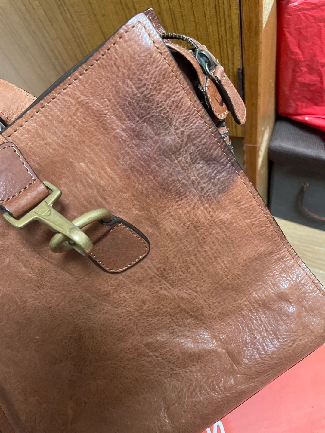 Used twice . It’s a gift I received on a very special occasion but it’s heavy . It’s obvious coz the bag is made with pure leather However due to storage it has 2 marks but I guess’s it’s due to the material.