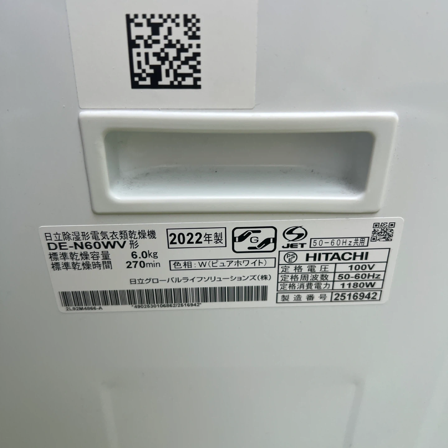 HITACHI ノーダクト 衣類乾燥機 6kg DE-N60WV 2022年製