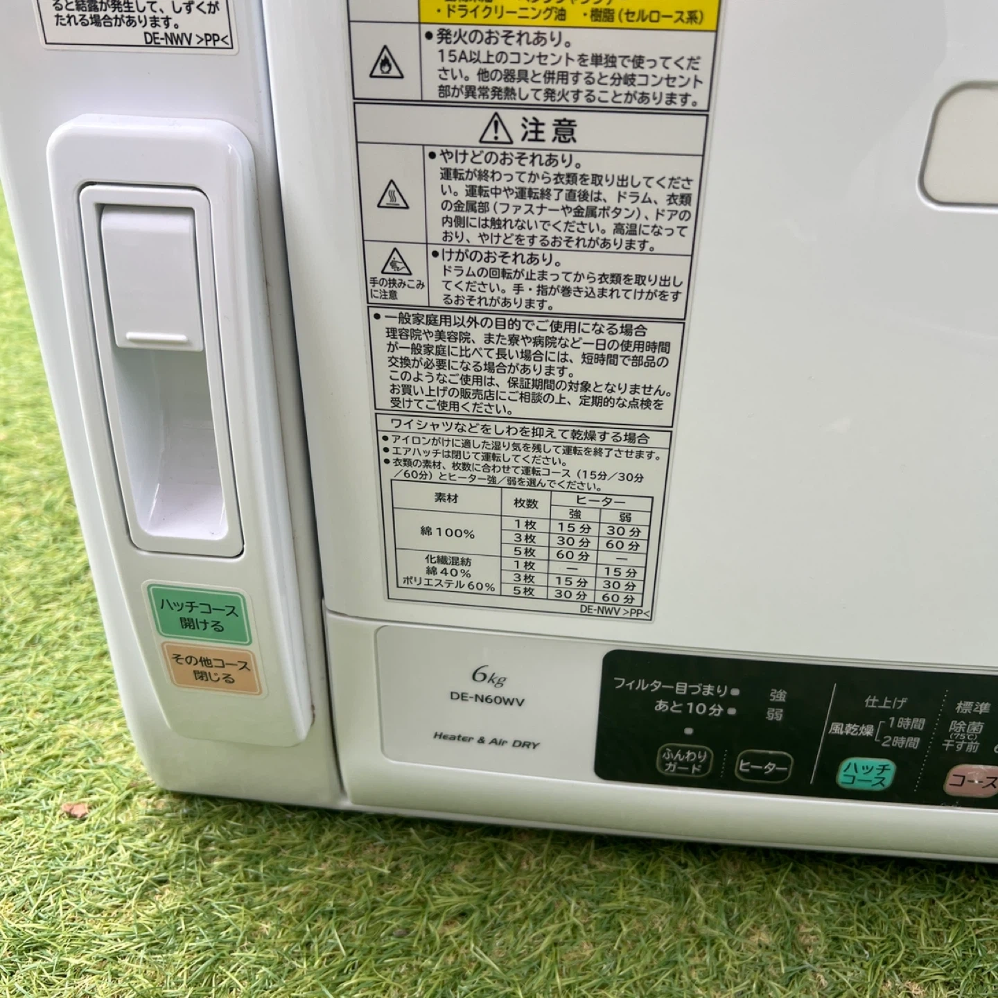 横浜市内であればプラス1,000円で配達可能です! 予定が合えば多少離れたエリアでも配達可能です。 ※その他地域はコメントにてご相談くださいませ! HITACHI 日立 衣類乾燥機 6kg DE-N60WV 2022年製 カラー:ホワイト 白 本体、排水ホース 【商品概要】 ●エアハッチで、すばやく、やさしく乾燥 ●ヒーター&風乾燥の2way乾燥  衣類に合わせて乾燥方式が選べる。熱に弱いデリケートな衣類の乾燥にはヒーターを使わない「風乾燥」。 ●仕上げコース  生乾きや湿っぽい衣類を仕上げ乾燥するときに。 サイズ(約):幅630×奥516×高670mm 容量:6kg ●基本色:白 ●色名称:ピュアホワイト ●商品生産国:日本 ●本体高さ[mm]:670 ●本体幅[mm]:630 ●本体奥行[mm]:516 ●本体質量[kg]:約26 ●衣類乾燥機・方式:ノーダクト・除湿 ●衣類乾燥機・設置形態:ユニットタイプ ●湿度センサー:有 ●電源オートオフ:有 ●消費電力[W]:1,180 ●衣類乾燥機・容量[kg]:6.0 出品直前に動作確認を兼ねて一度使用しました。 よく乾きました。 使用に伴う、傷や汚れはあるかと思いますが、まだまだ使用可能です。 写真にてご確認くださいませ。 中古品をご理解の上ご検討下さいませ!