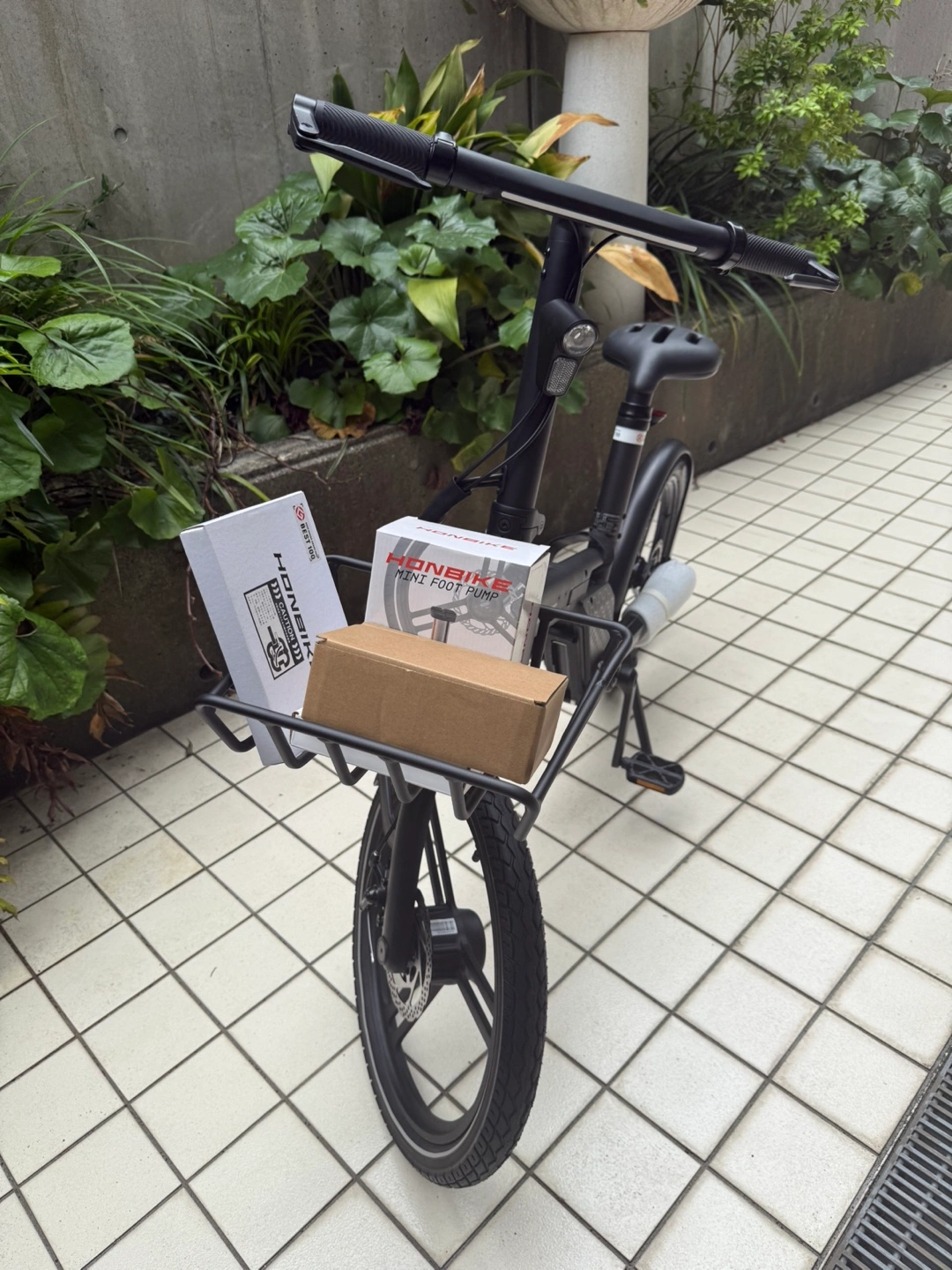 HONBIKE 電動アシスト自転車 STONE PLUS(前カゴ&空気入れ付き) カラー: ブラック*ブラック 最新モデルの電動アシスト自転車「HONBIKE STONE PLUS」を出品します。 本商品は新品・未使用で、未開封の状態です。 さらに、専用フロントバスケット(前カゴ)と高性能フットポンプ(空気入れ)もセットでお付けします! 【セット内容】 ・HONBIKE STONE PLUS(ブラック)1台 ・HONBIKE専用 フロントバスケット(未使用) ・HONBIKEロゴ入り フットポンプ(空気圧計付き・未使用) 【特徴】 ・チェーンレス設計で快適&静音走行 ・5段階の電動アシストモード搭載 ・前後ディスクブレーキで安心の制動力 ・工具不要で簡単折りたたみ可能 ・最大航続距離:100km以上(モードにより変動) ・USB充電ポート搭載(スマホ充電可能) 【おすすめポイント】 ✔️通勤・通学・街乗りに最適な軽量&スマートデザイン ✔️バスケット付きで荷物の持ち運びも便利 ✔️ポンプ付きでいつでも空気圧管理◎ 【状態】 ・自宅保管(箱付き) 【希望価格】¥199,000円 (税込)(相場よりお得です!) 【受け渡し場所】表参道駅周辺または南青山付近までお越し頂ける方 ご興味ある方はお気軽にご連絡ください! 早い者勝ちとなりますので、お早めにどうぞ🚲✨