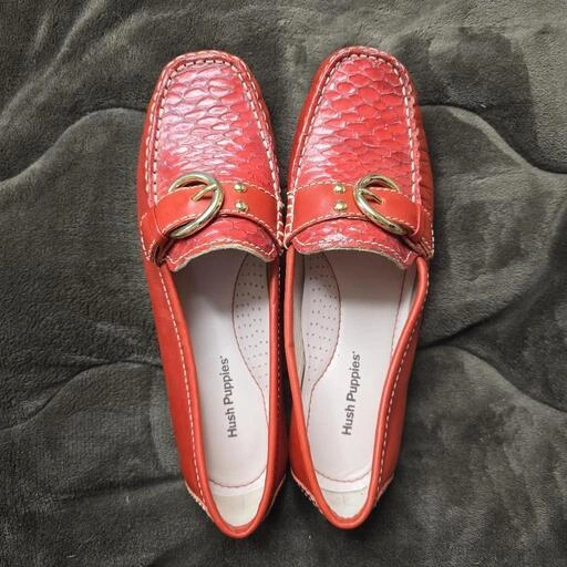 新品未使用品ではありますが、箱はありません。 サイズ 7½(24.5位) 柔らかいレザー クロコダイル風デザインの 赤いローファー バックル付き - ブランド: Hush Puppies - 色: 赤 - デザイン: クロコダイル風 - 装飾: バックル付き - ソールの素材: ゴム - スタイル: ローファー ご覧いただきありがとうございます。 カラー...レッド系 汚れ・破れ・臭いなど...なし ご希望の方はお気軽にご連絡ください。