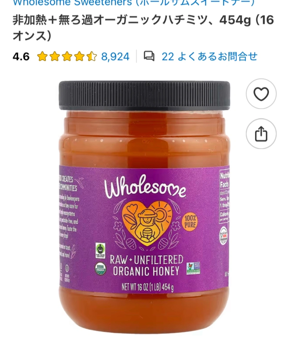新品未開封。お菓子作りのために大量に購入してしまいました。3本セットでお譲りします。 1.非加熱オーガニックハニー2本の賞味期限は3月16日まで。 定価2980円x2本 5460円 2.非加熱無濾過ハニーは賞味期限の打刻はありません。(今月購入したばかりです。) 1900円 合計7360円相当→5000円(3本) バラ売りも出来ますのでお気軽にコメントください。 1. 2本 4000円 2.1本 1000円