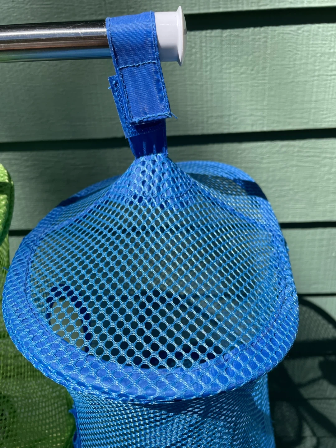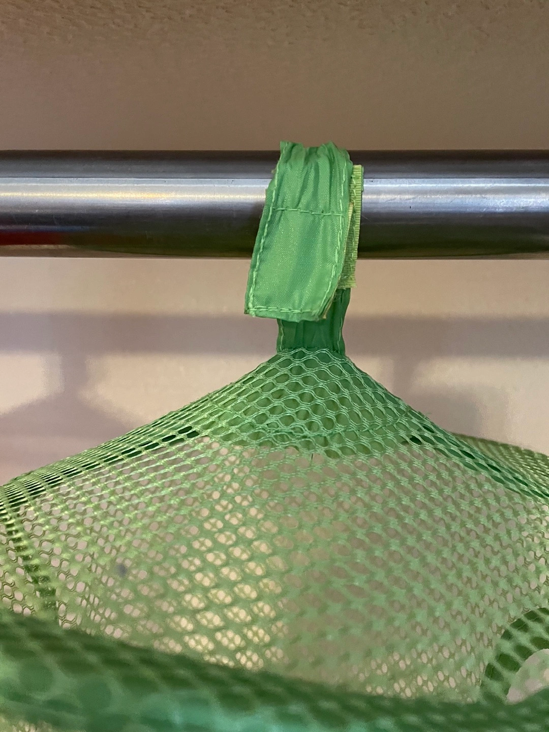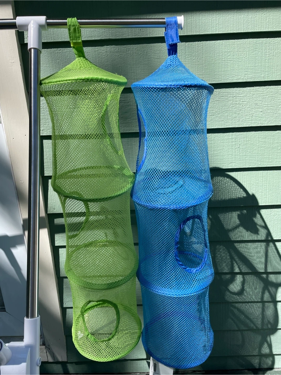 IKEAのネット収納小物をお譲りします。 素材はポリエステル100%。ハンガー バーにかけて使います。 メッシュに破れなどは見当たりません。緑の方がかける部分の布に少しシワがあります。 サイズは直径が約22-24センチ、一段の高さがだいたい25センチぐらいです。伸縮性、弾力性があるので中に入れるものによって多少変化します。 洗濯してありますが、落とせないシミやネップなどあらかじめご了承のほどお願いいたします。自宅で保管していたものですので、セカンドハンドにご理解のある方にご活用いただければ嬉しいです。