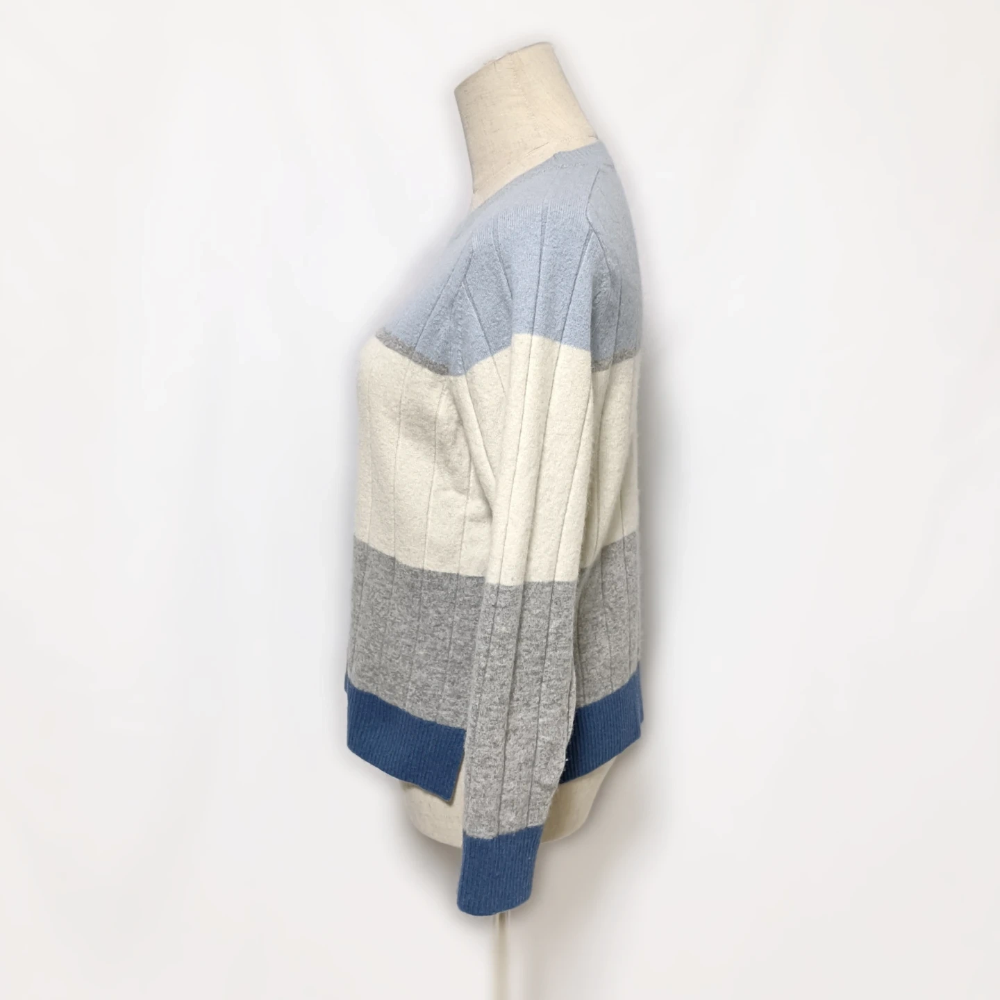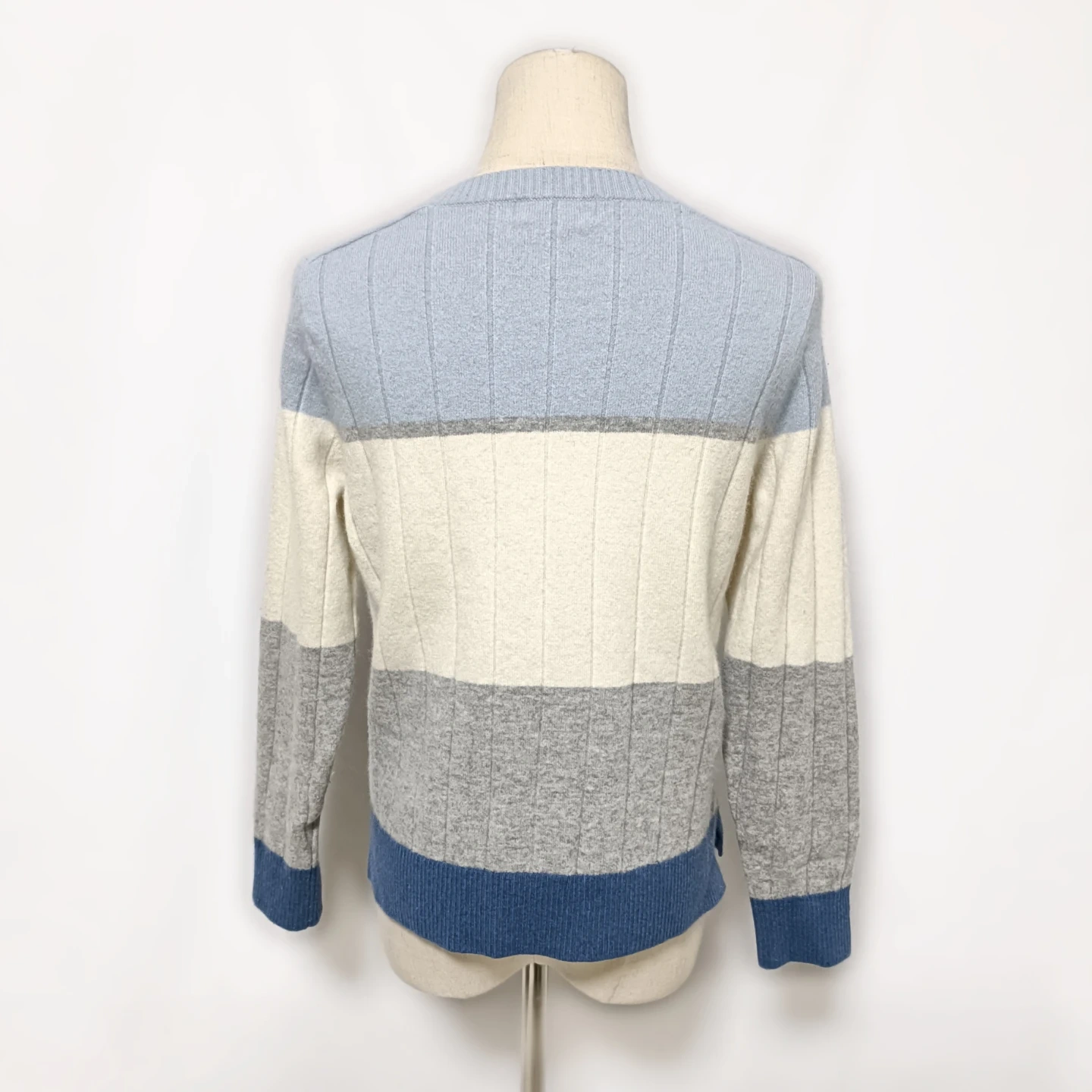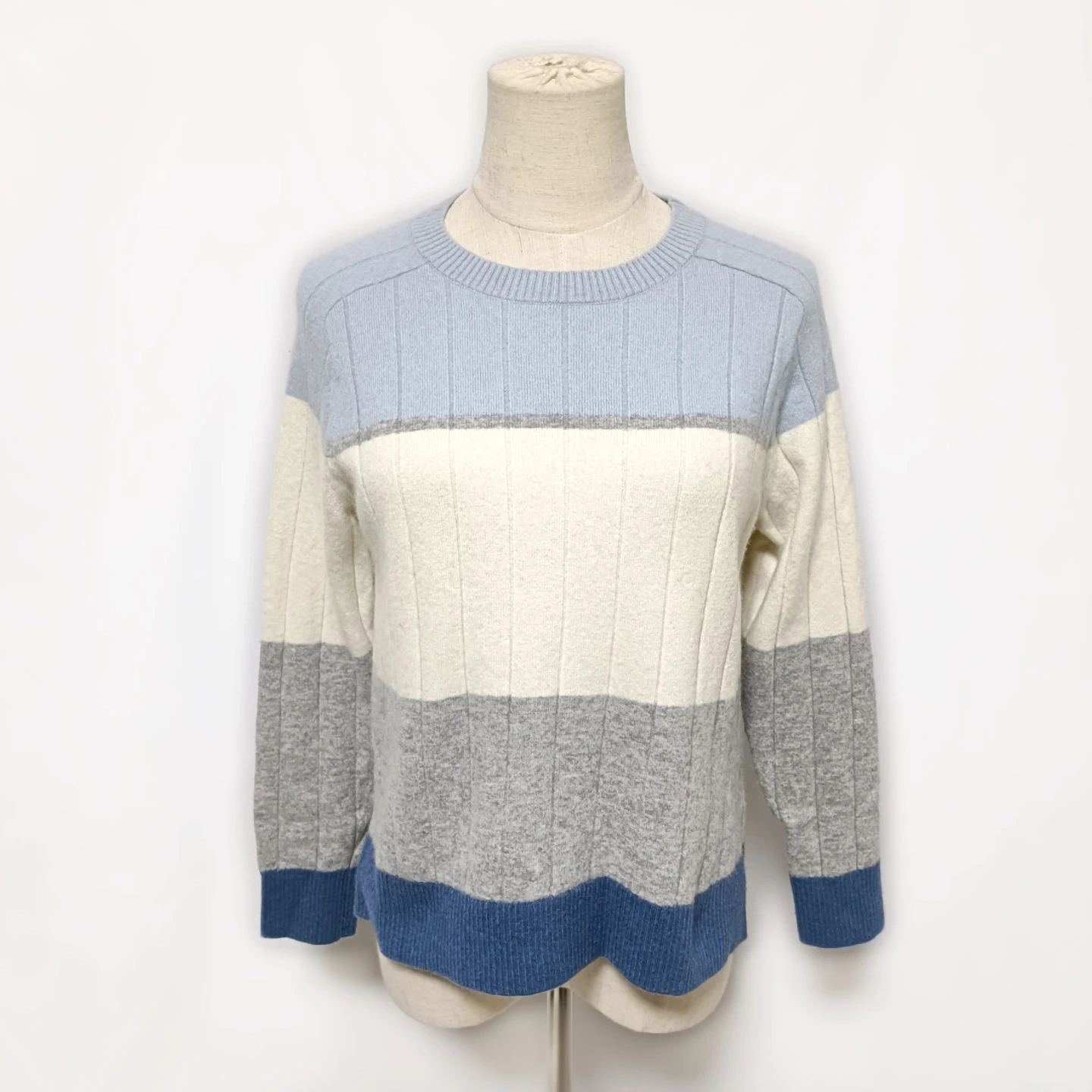 ご覧いただきありがとうございます! J.PRESS(ジェイプレス)のカラーブロックデザインが目を引く、上質なクルーネックニット/セーターです。オンワード樫山が手掛ける人気ブランドの一枚です。 カラーブロックデザイン: ライトブルー、オフホワイト、グレーの3色を大胆に組み合わせたマルチカラーボーダーです。 裾と袖口のブルーのリブがアクセントになっています。 #joymaxお得なプロフへ #ゆうの古着屋さん_レディーストップス ★フォロー割り+1点サービス★ 3000円以上の商品購入時、フォローして頂けましたら+1点無料サービス☆ ①フォローしていること ②+1点の商品名 をコメントしてください☆ 即購入大歓迎です。 値下げなどの詳細はプロフィールをご覧ください☆ □商品名□ 【J.PRESS】美品 マルチカラーブロック クルーネックニット M ウール混 □ブランド□ J.PRESS ジェイプレス □表記サイズ□ M □実寸サイズ(cm) □ 着丈:53 身幅:48 袖丈:61 ※実寸につきまして多少の誤差はご了承ください。 ※表記サイズだけではなく実寸のサイズをご確認ください。 □カラー□ ライトブルー、オフホワイト、グレーのマルチカラー □素材□ 毛(ウール)70% ナイロン 30% □コンディション□ 目立った汚れやダメージなど特にございません。 ※汚れはできる限り写真にて掲載しております。まずは画像をご確認ください。 □お取引について□ トラブル防止のため、購入前にプロフィールをご確認くださいませ。 なにかご質問がございましたらお気軽にコメントください。 出品一覧→ #joymaxお得なプロフへ どうぞよろしくお願い致します。