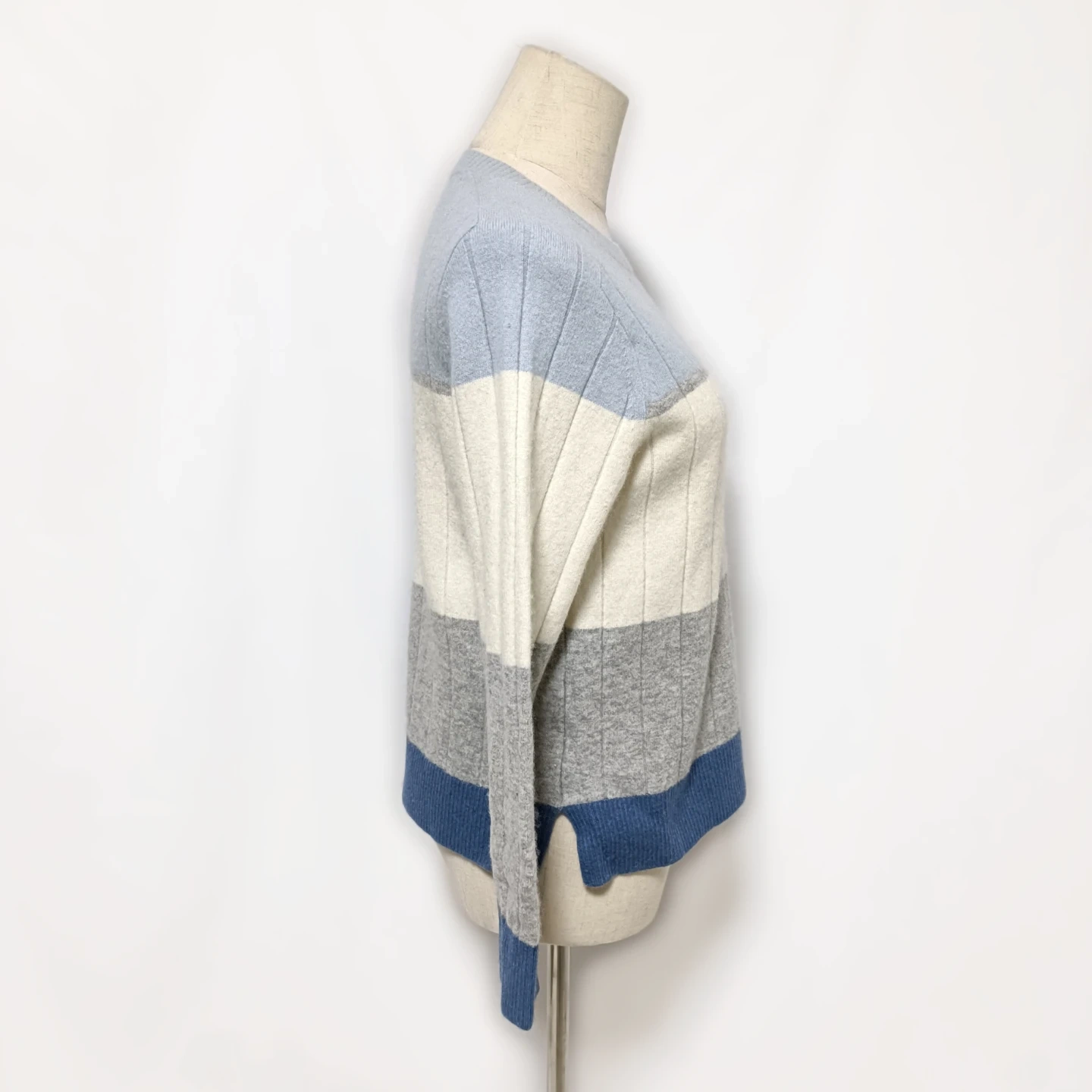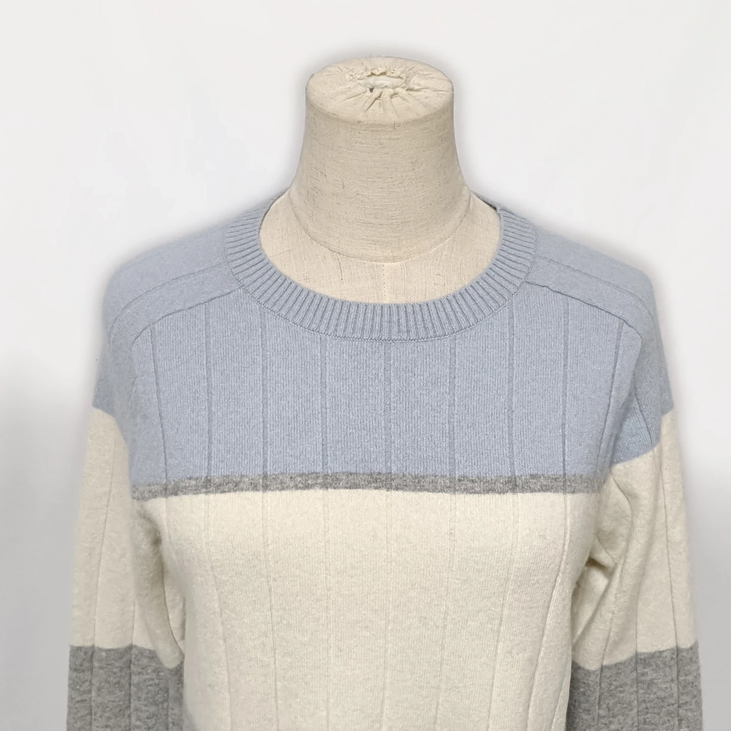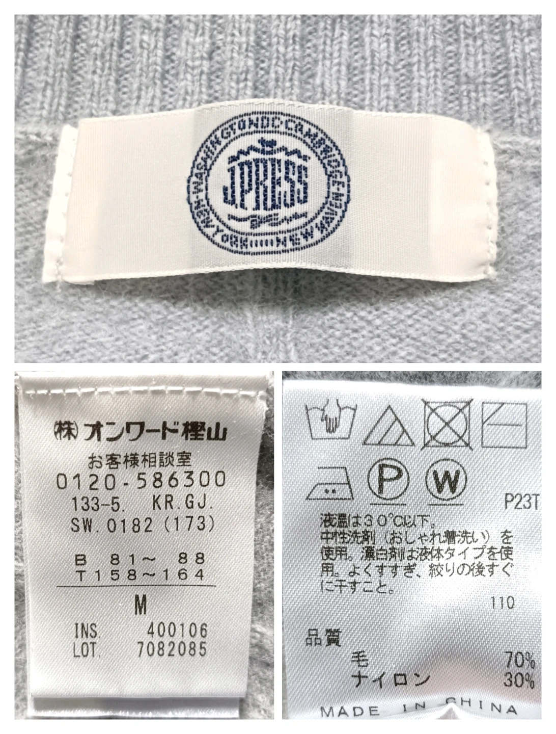 ご覧いただきありがとうございます! J.PRESS(ジェイプレス)のカラーブロックデザインが目を引く、上質なクルーネックニット/セーターです。オンワード樫山が手掛ける人気ブランドの一枚です。 カラーブロックデザイン: ライトブルー、オフホワイト、グレーの3色を大胆に組み合わせたマルチカラーボーダーです。 裾と袖口のブルーのリブがアクセントになっています。 #joymaxお得なプロフへ #ゆうの古着屋さん_レディーストップス ★フォロー割り+1点サービス★ 3000円以上の商品購入時、フォローして頂けましたら+1点無料サービス☆ ①フォローしていること ②+1点の商品名 をコメントしてください☆ 即購入大歓迎です。 値下げなどの詳細はプロフィールをご覧ください☆ □商品名□ 【J.PRESS】美品 マルチカラーブロック クルーネックニット M ウール混 □ブランド□ J.PRESS ジェイプレス □表記サイズ□ M □実寸サイズ(cm) □ 着丈:53 身幅:48 袖丈:61 ※実寸につきまして多少の誤差はご了承ください。 ※表記サイズだけではなく実寸のサイズをご確認ください。 □カラー□ ライトブルー、オフホワイト、グレーのマルチカラー □素材□ 毛(ウール)70% ナイロン 30% □コンディション□ 目立った汚れやダメージなど特にございません。 ※汚れはできる限り写真にて掲載しております。まずは画像をご確認ください。 □お取引について□ トラブル防止のため、購入前にプロフィールをご確認くださいませ。 なにかご質問がございましたらお気軽にコメントください。 出品一覧→ #joymaxお得なプロフへ どうぞよろしくお願い致します。