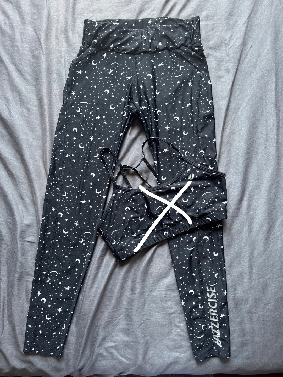 星と月のデザインが特徴のJAZZERCISEのヨガウェア。 - ブランド: JAZZERCISE - デザイン: 星と月のパターン - アイテムタイプ: ヨガウェア - ロゴ: JAZZERCISEのロゴ - 素材: ストレッチ素材 - サイズ: S(タグは切ってあります) ご覧いただきありがとうございます。 水着のような、サラッとした素材です。 落ちやすかったため、縫い目からほどいてゴムを入れてあります。 ロゴはひび割れあり。 中古品ですので、ご理解ある方のご購入をお願いいたします。 日時によってはファミリーマート以外でもお渡し可能です。