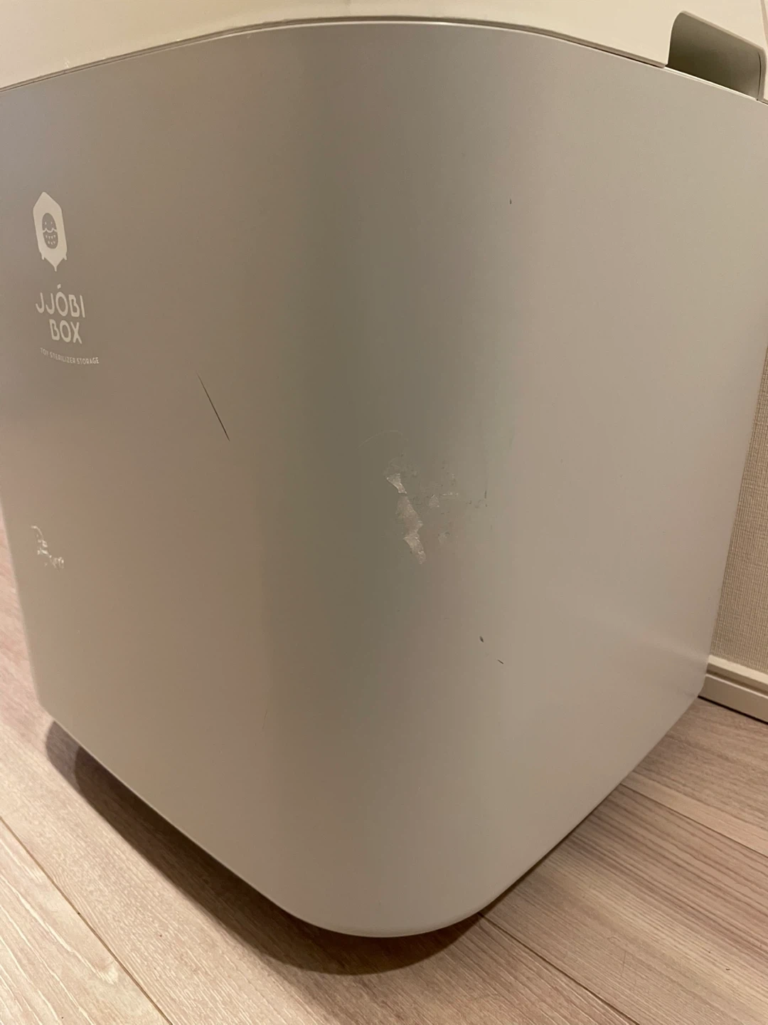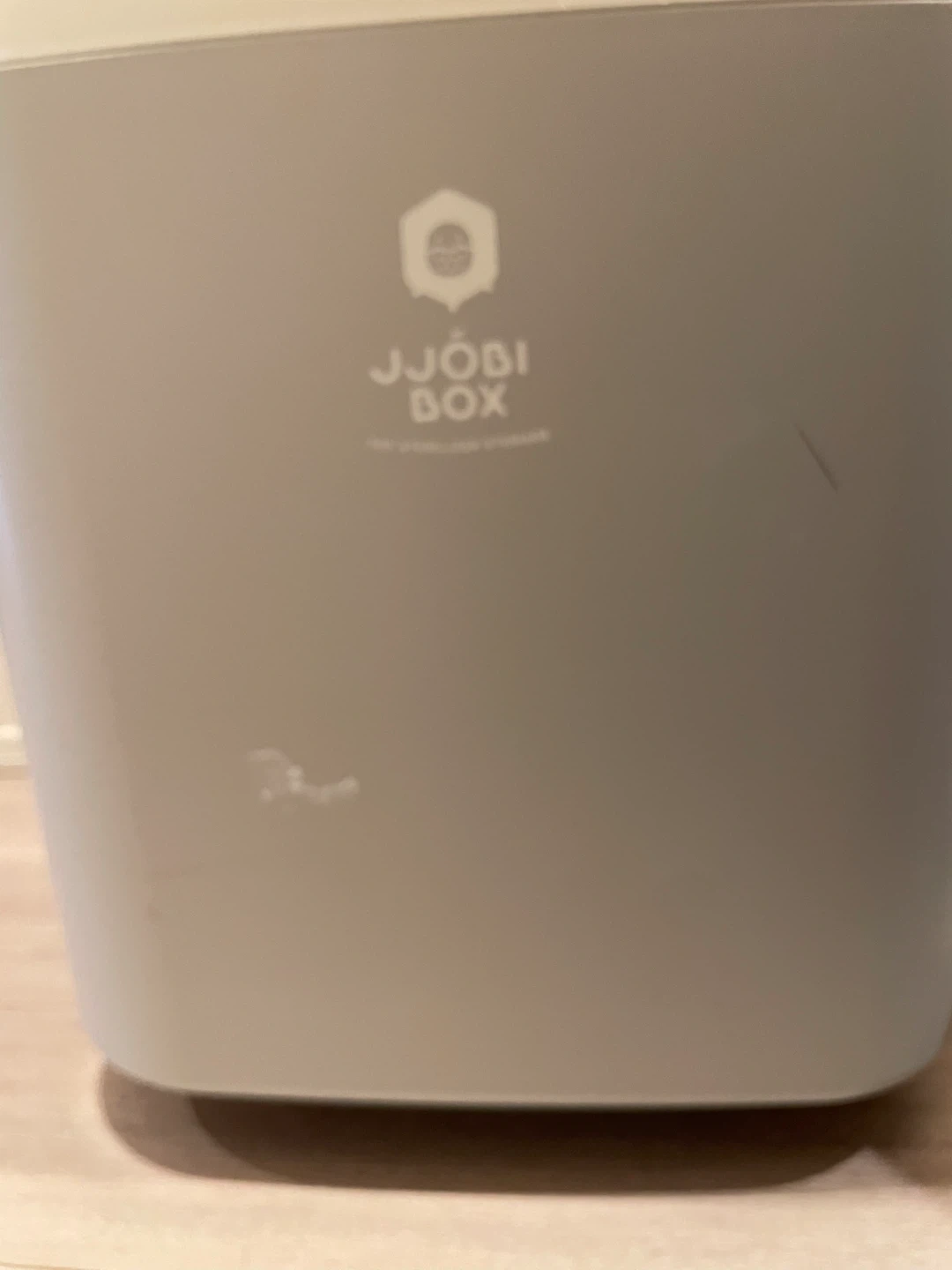 ジョビボックス UVライト除菌器です。 3年ほど前に購入したものです。 定価だと2万円ほどします。 ※外側にシールの剥がし後が2箇所、ペンで書いたような汚れが数箇所あります。 中古品とご理解の上、ご検討ください。