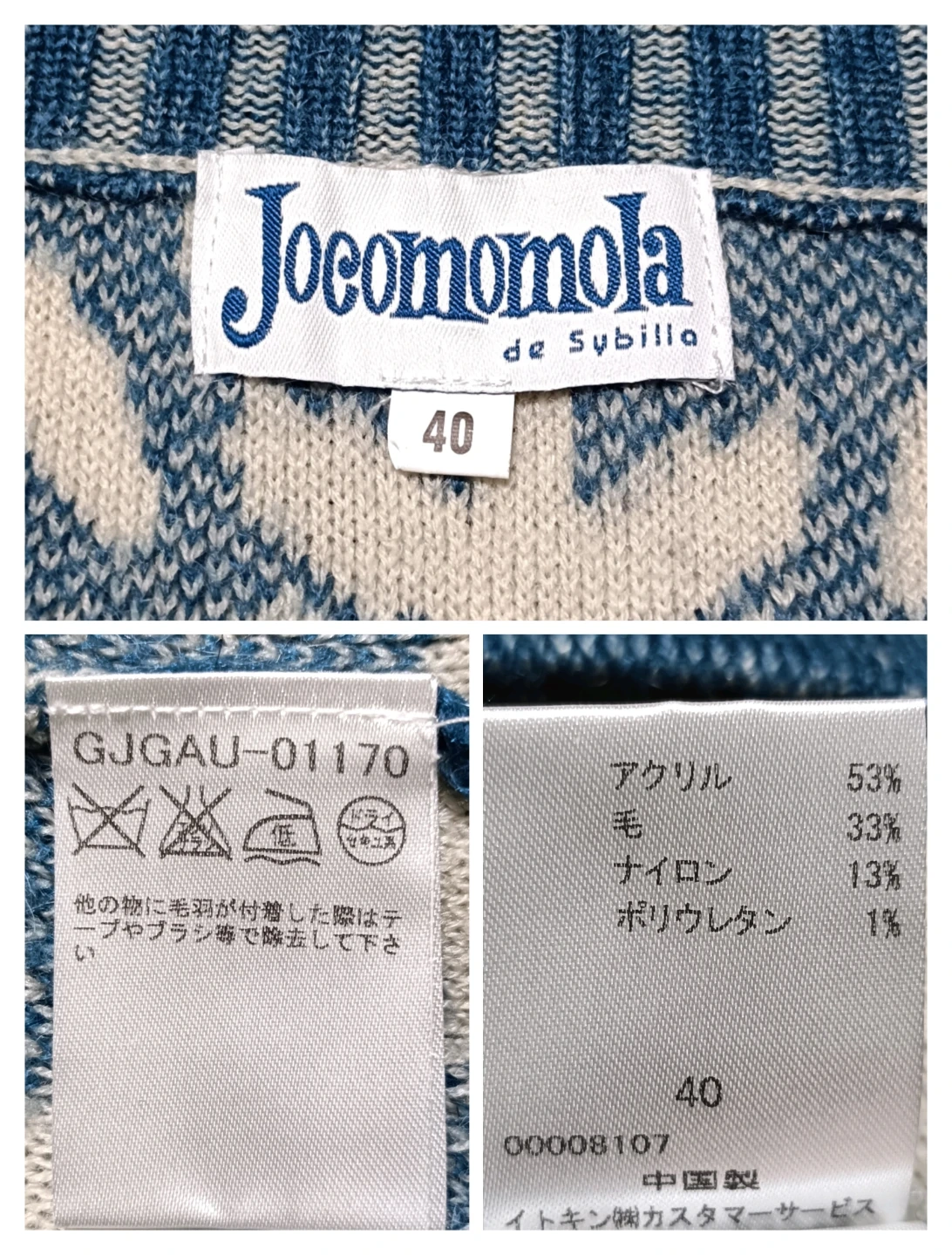 ご覧いただきありがとうございます! ホコモモラ de Sybilla (Jocomomola) の、リーフ柄が可愛いジャガードニットスカートです。 青(ブルー)とオフホワイトのコントラストが効いた北欧風のデザインで、コーディネートの主役になるアイテムです。 しっかりとしたジャガード編みのニット素材で暖かく、秋冬のカジュアルスタイルにぴったりです。 タイトすぎない適度なシルエットと、伸縮性のあるウエストリブで履き心地も抜群です。 □商品名□ Jocomomola ホコモモラ リーフ柄 ニットスカート サイズ40 □ブランド□ Jocomomola ホコモモラ □表記サイズ□ 40(Lサイズ相当) □実寸サイズ(cm) □ 【平置きサイズ】 ウエスト:35 着丈:53 ※実寸につきまして多少の誤差はご了承ください。 ※表記サイズだけではなく実寸のサイズをご確認ください。 □カラー□ ブルー(青)、ベージュ系 □素材□ アクリル:53% 毛(ウール):33% ナイロン:13% ポリウレタン:1% □コンディション□ 目立った汚れやダメージなど特にございません。 ※汚れはでき る限り写真にて掲載しております。まずは画像をご確認ください。 どうぞよろしくお願い致します。 □商品管理番号□ DD1-R-5605
