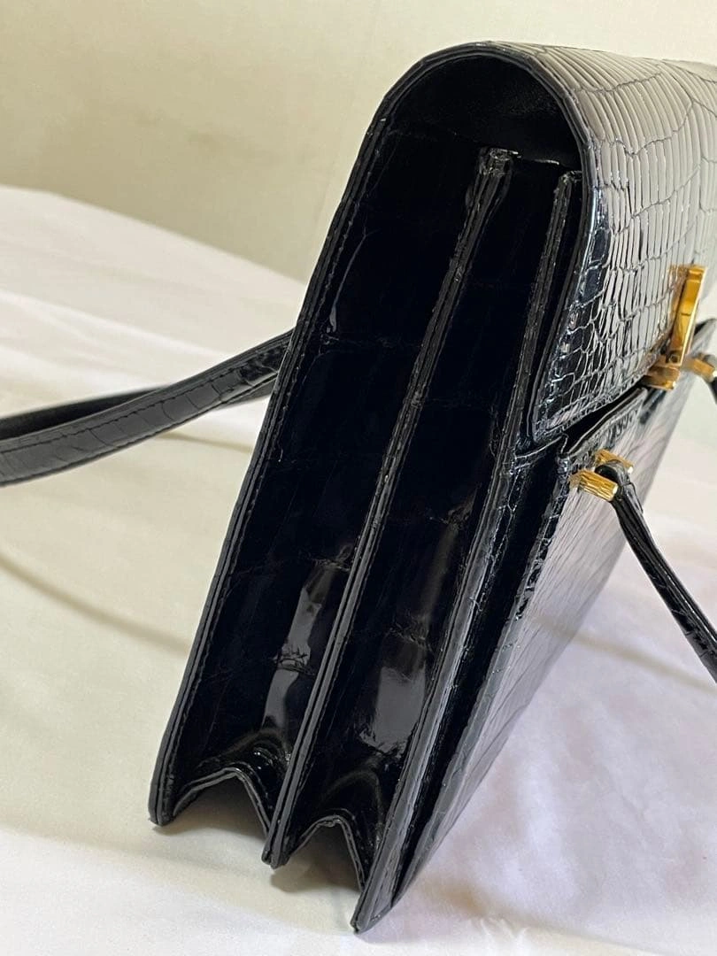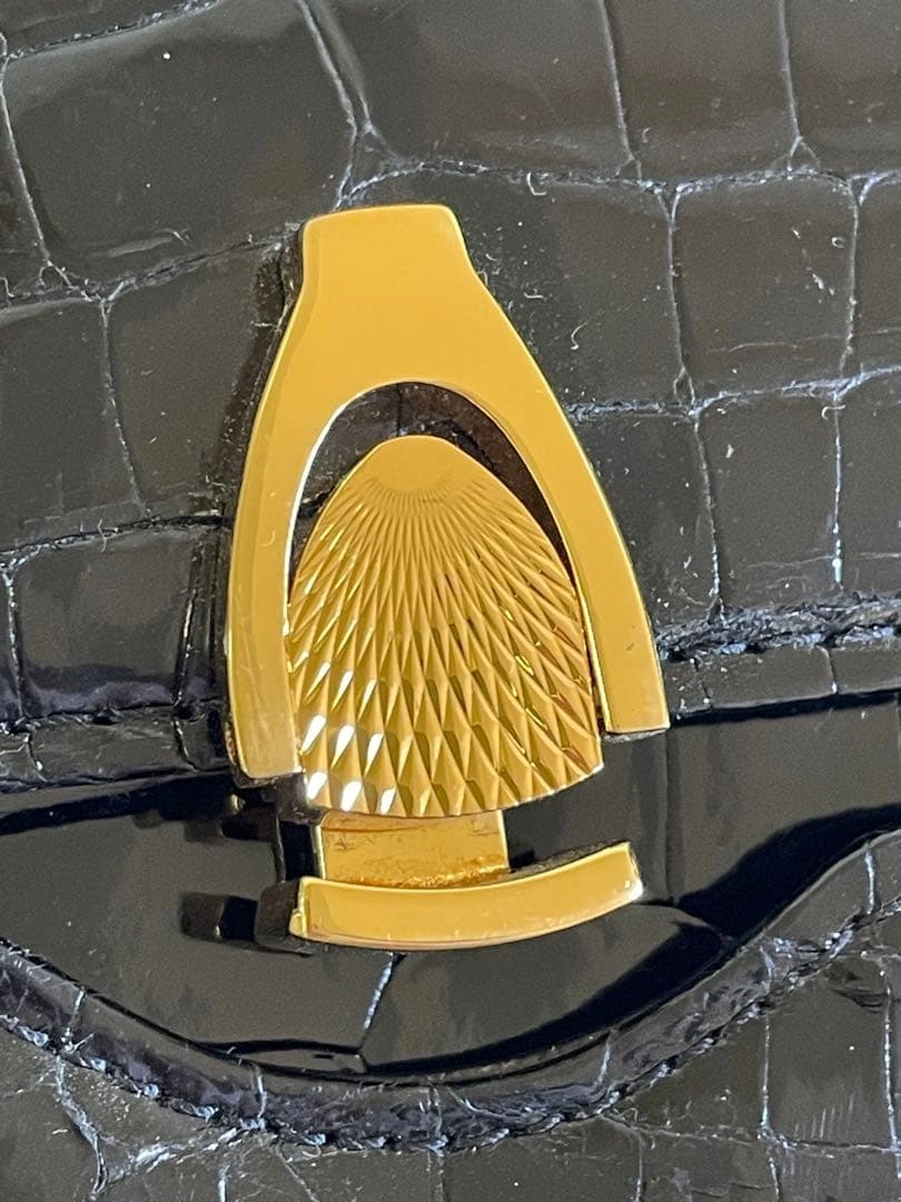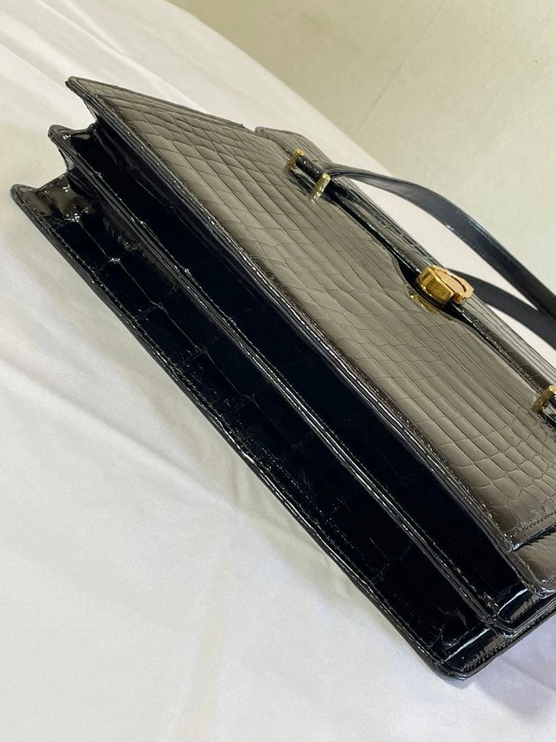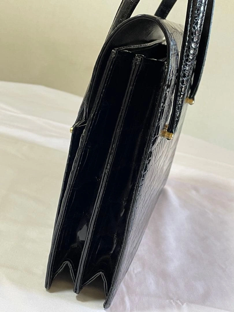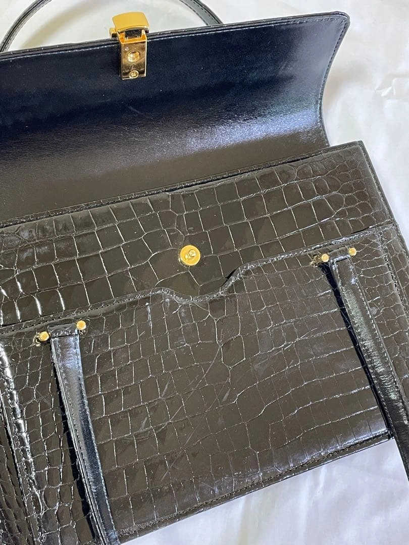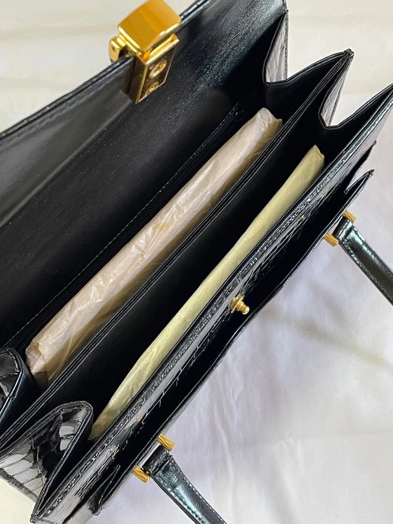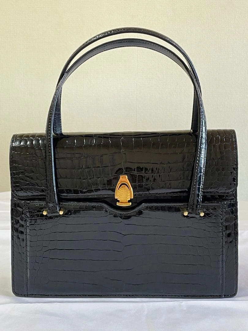 JRA認定 シャイニングクロコダイル ハンドバッグ エキゾチックレザー クロコダイル 鰐革 ワニ革 サイズ/約28×19.5×マチ(最大)9cm ※底マチの広いバッグに比べて、中身が少ない場合は厚みが出ずコンパクト感があります ハンドルの 長さがありますので腕掛けしてもスマートにお持ち出来ます 入学、卒業式、結婚式等フォーマルシーンでエレガントにお持ち出来ます 和装にも合わせやすい上品なデザインです 祖母の箪笥にしまってありました 購入時期、使用頻度等不明です 内ポケットにJRAのロゴプレートと値札が入っておりました どこかでのSALEで購入したようです(¥99,000) コキズがありますがお持ちになるには目立たない程度だと思います こちらのバッグは画像でご確認頂きNC.NRでお願い致します 日本の職人によって製造された日本製品であることを証明するJRAマーク付き ご希望の方はお気軽にご連絡ください。