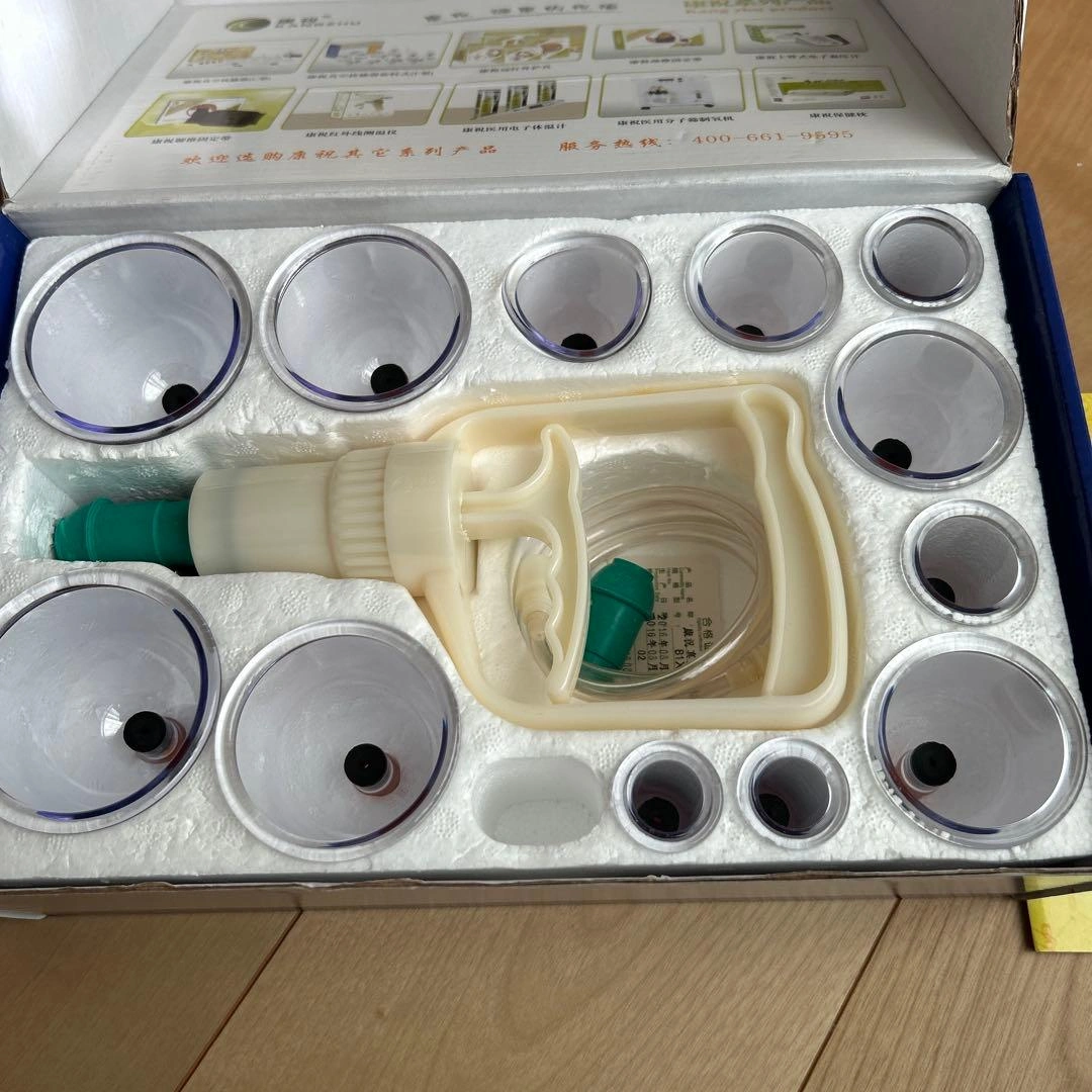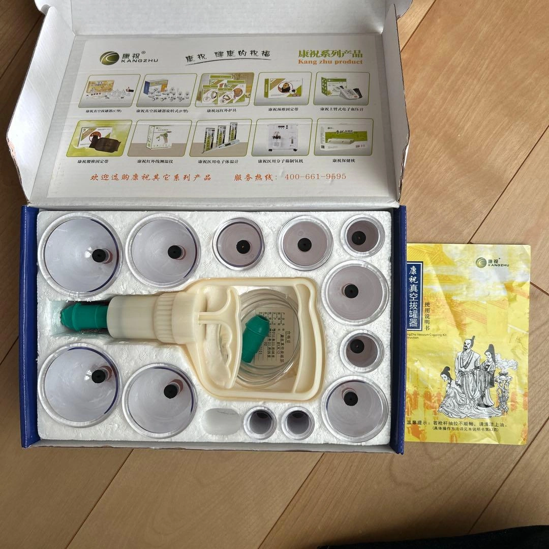 カッピングのセットです。 手動ポンプ式で、様々なサイズのカップが付属されています。 - ブランド: KangZhu - 商品名: 真空抜き器 - 付属品: カッピングカップ(大小)12個 - 機能: 真空吸引機能 - 使用方法: 手動ポンプ式 - サイズ: 小・中・大 疲労が溜まっているときや 筋肉痛がつらいときにおすすめです。 むくみや冷え性の方にも。 写真2枚目の中央下、カップが一つありません。 購入してから数回使用しています。 ご希望の方はお気軽にご連絡ください。