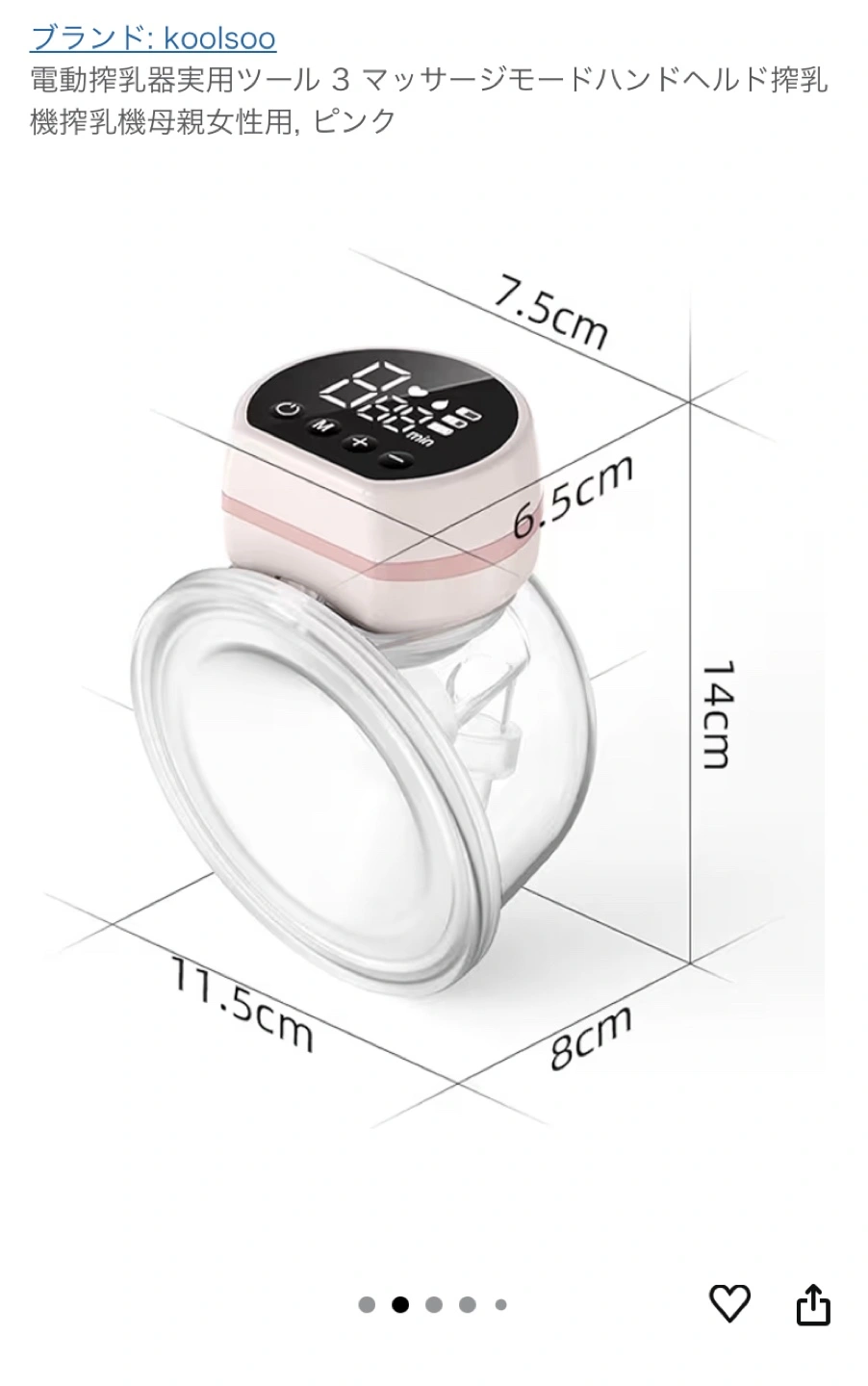 一個1800円 二個セット3000円 昨年11月ころから10回ほど使用。 2個あるので同時に両胸に使えます。また、交互に使えば充電切れで困らないので便利でした。 ブラなどに挟んでハンズフリーで利用できて、部品も少なく洗うのも楽です。 充電コードはついていないので、自宅のC型?で充電していました。 使用したものなので、細かいことが気にならない方へ。 洗って消毒してありますが、保管していたものなので、一度洗ってからお使い下さい。 受け渡しは下井草図書館近くの自宅希望です。 【情報】 ブランド:koolsoo 種類:電動搾乳器 カラー:ピンク、クリア サイズ: 全体高さ:約14cm 土台:約7.5cm×8cm カップ直径:約11.5cm