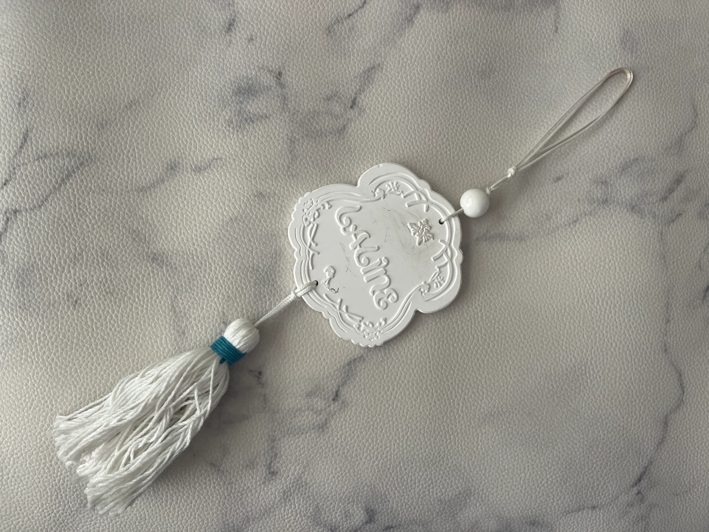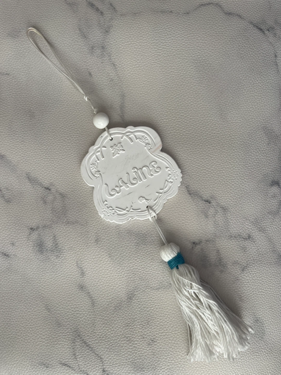 あたたかさLALINEのタッセルです。飾るだけでオーシャンに。使用感あり、お写真の通り多少汚れございます。 香りのオイルスプレーは付いていません。お手持ちのスプレーを使用してください。