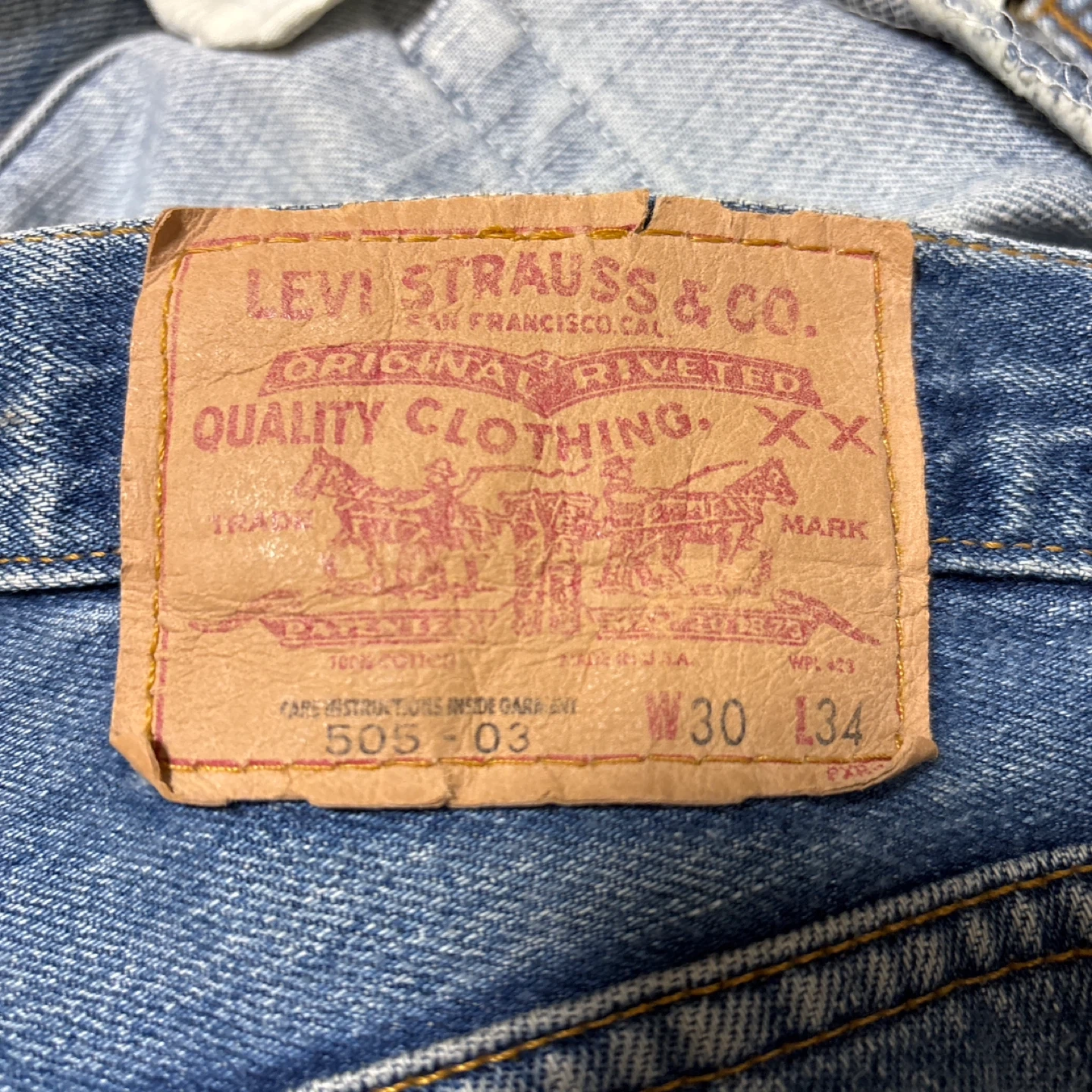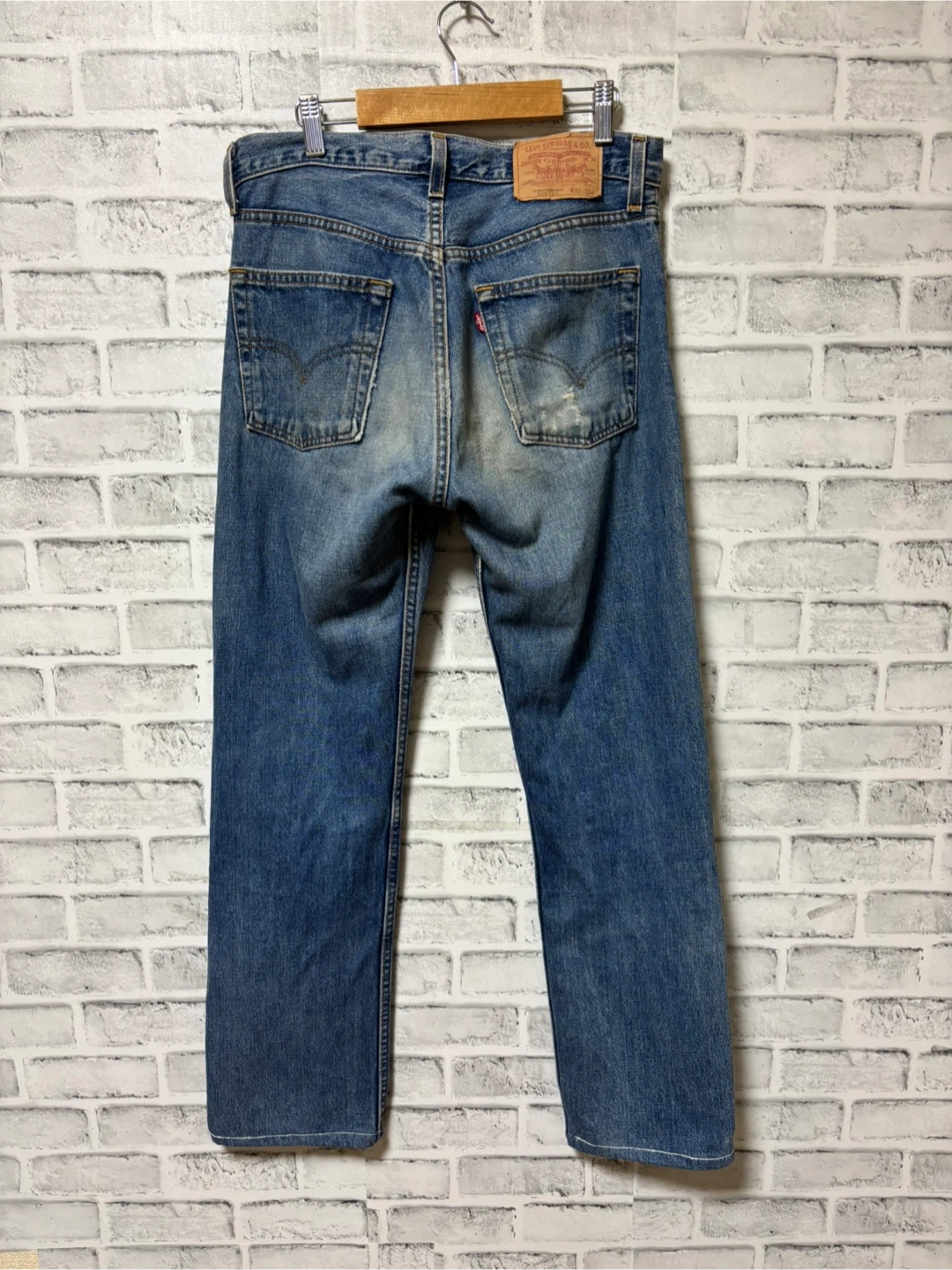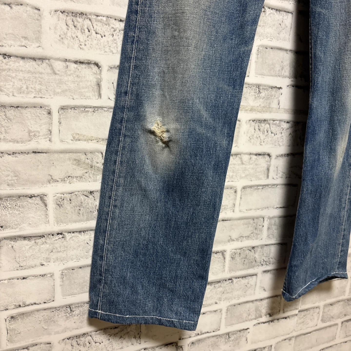 ★商品説明 Levi's 505-03 アメリカ製 ジーンズパンツ 00s (2000年の1月に製造) 刻印553 米国製のLevi’sが「Made in USA」の表記で流通していた時期、特に米国内の自社工場が順次閉鎖されていった2000年代初頭のモデルです! ★サイズ W30 L34 (Mサイズ相当) 総丈100cm 股上 30cm 股下 70cm ワタリ幅 24cm 裾幅 19cm ウエスト 78cm 平置き39cm ★状態 ※右の膝下にダメージ箇所 ※後ろの右ポケットにダメージあり 多少の使用感、ダメージはありますが ヴィンテージ 商品なので色落ちも良くカッコよく見えて問題なく着用可能な商品です。