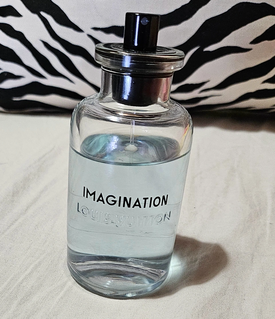 LOUIS VUITTON 香水 Imagination 100ml 2022年に購入し、たまに使用していました。ボトルのキャップが紛失してしまい、見つからないので、カバンに入れて持ち運べなくなったので購入することにしました。 衣服に直接つけるとシミになる可能性があるので、できるだけ肌につけるのがベストです。ルイ・ヴィトンの香水の多くは「パルファム」タイプで、香りが長持ちするので、1プッシュで約7~8時間持続します。