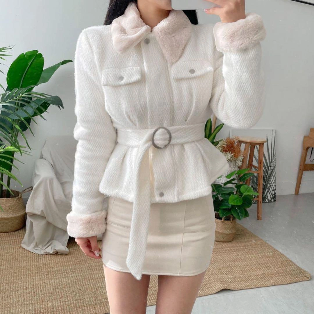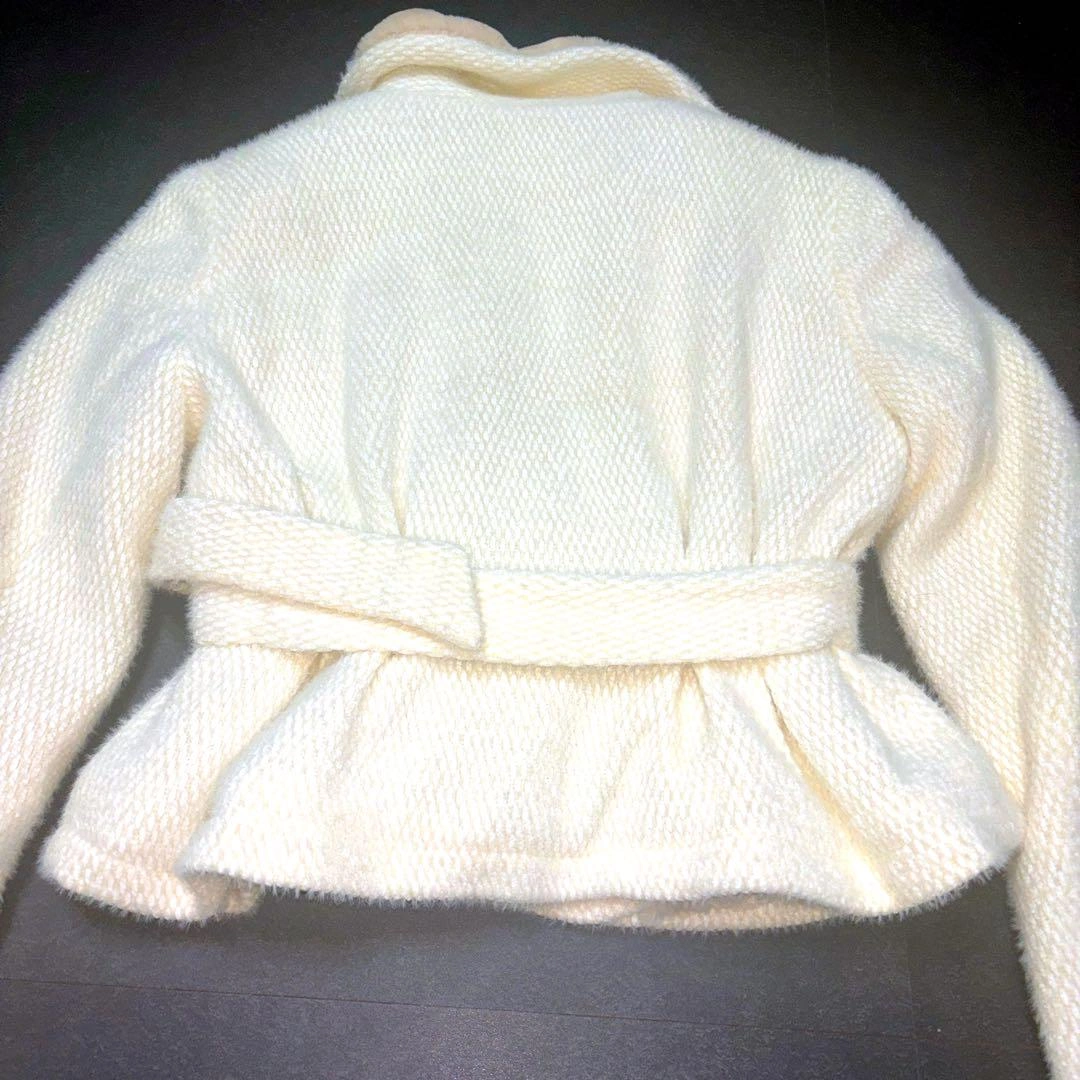ふわっと上品なホワイトのショートジャケットです。 リアルミンクの柔らかいファー襟と、ピンタックデザインでスタイルアップ効果があります。 ウエストベルト付きで、着るだけで女性らしいシルエットになります。 軽く羽織るだけで高見えするアイテムです。 数回のみ着用の美品です。 目立つ汚れや傷はなく、状態はとても良いと思います。 デートやお出かけ、冬のイベントコーデにもおすすめです。 【カラー】ホワイト(アイボリー寄り) 【サイズ】FREE(目安:着丈約52cm、肩幅約40cm、身幅約45cm) 【状態】美品(試着または短時間着用程度) ご希望の方はお気軽にご連絡ください。