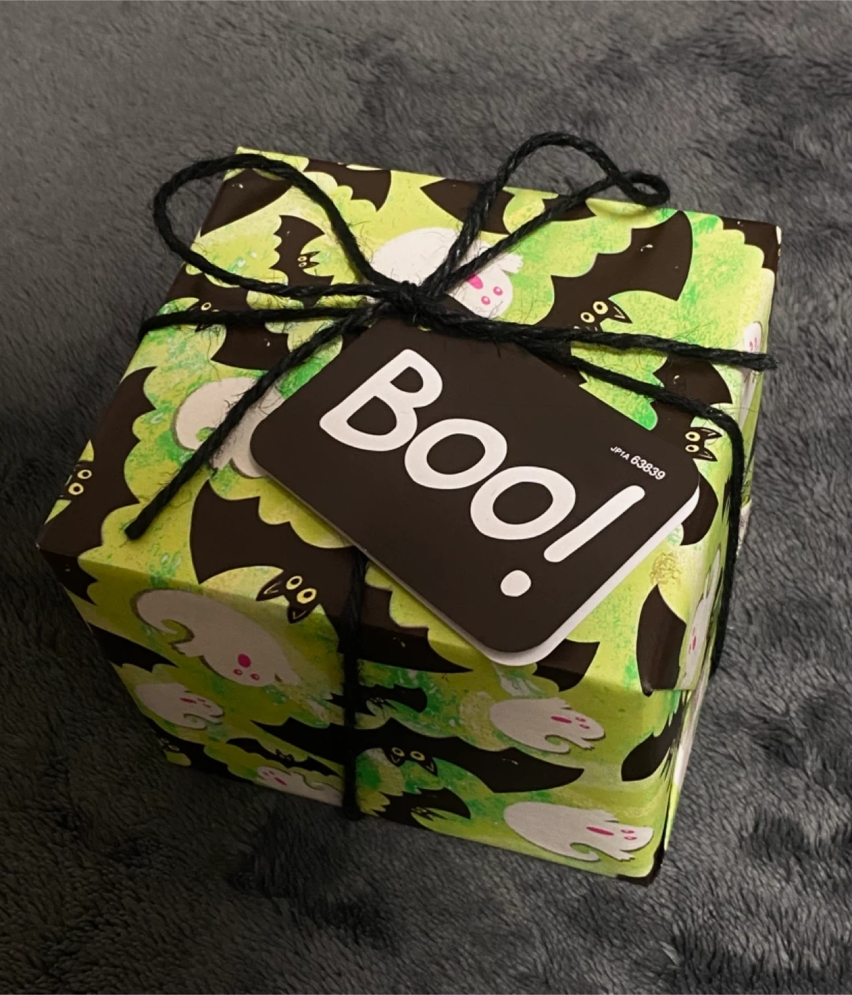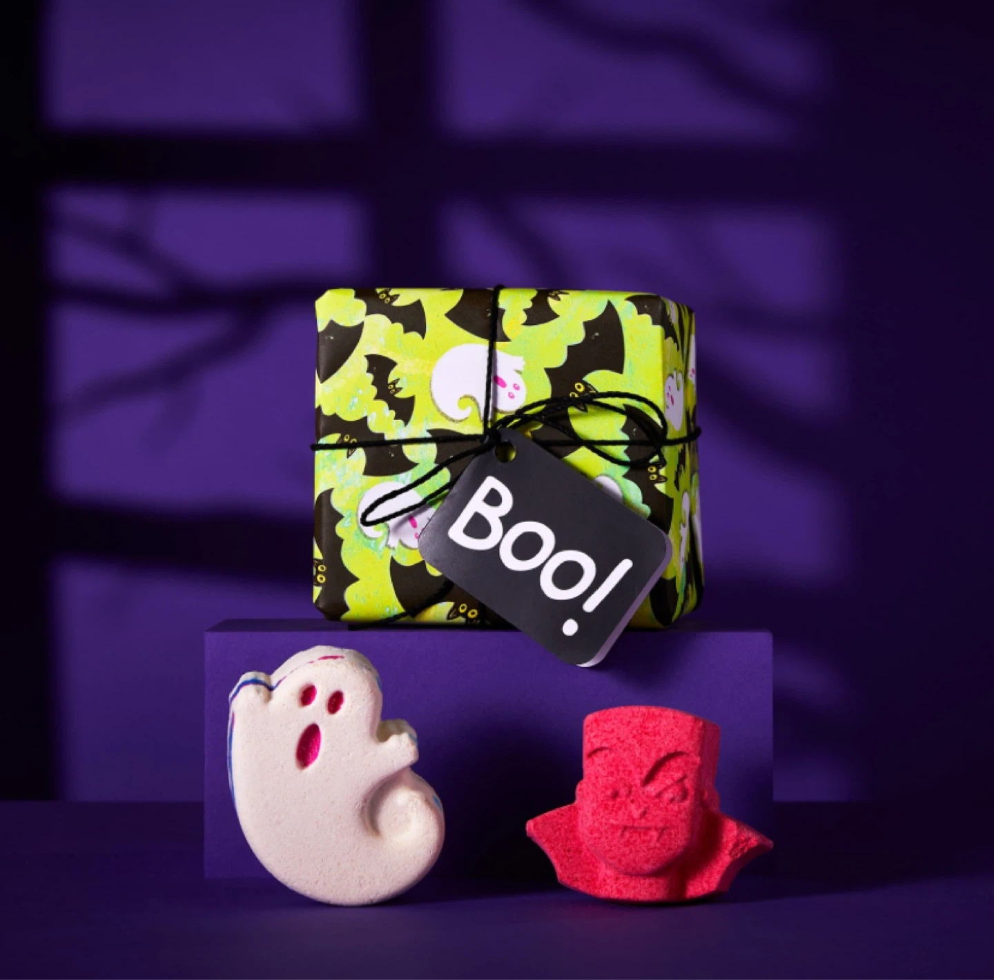 LUSH(ラッシュ)ハロウィン限定ギフト 🎁 「Boo!(ブー)」ギフトセット 内容: ・ゴースト型バスボム(入浴剤) ・ドラキュラ型バスボム(入浴剤) ※パッケージは写真の通りです。 状態:新品・未使用 開封していません。撮影のため外箱のみ確認しました。 香りもとても良く、プレゼントにもおすすめです。 ハロウィンシーズン限定販売品です。 知り合いからいただきましたが、お風呂がないため出品します。新品・未使用です。
