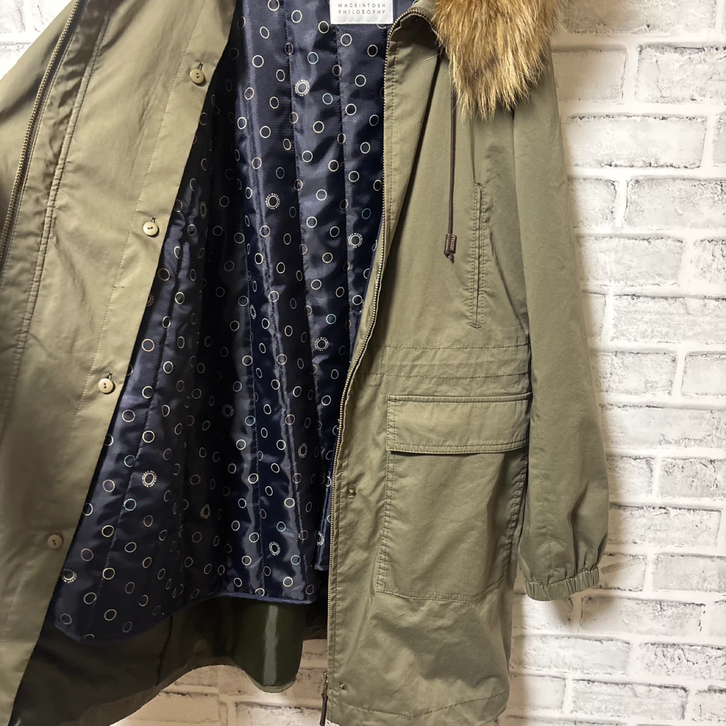 ★商品説明 MACKINTOSH PHILOSOPHY カーキ マッキントッシュフィソロフィー  モッズコート リアルファー毛皮(タヌキ) ★サイズ 38サイズ(Sサイズ相当) 身幅47cm 袖丈60cm 着丈82cm ★状態 多少の使用感はございますが大きく 目立つ汚れはなく問題なく着用可能です。