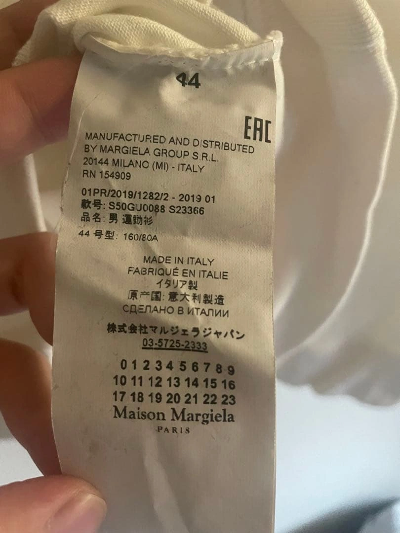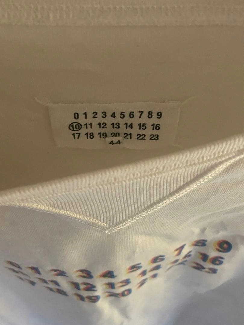 - 色: ホワイト - デザイン: 数字プリント - サイズ: 44(着丈:74身幅:66肩幅:66袖丈:61首周り:62) - ブランド: Maison Margiela - 製造国: イタリア ご覧いただきありがとうございます。 首元がかなり広めのデザインでゆるっと着用できます。 マルジェラが好きで購入したのですが、着用機会が少なくなったため出品します。 特に大きな傷や汚れなどなく、美品と考えておりますが、あくまで中古品のため神経質な方はご遠慮ください。