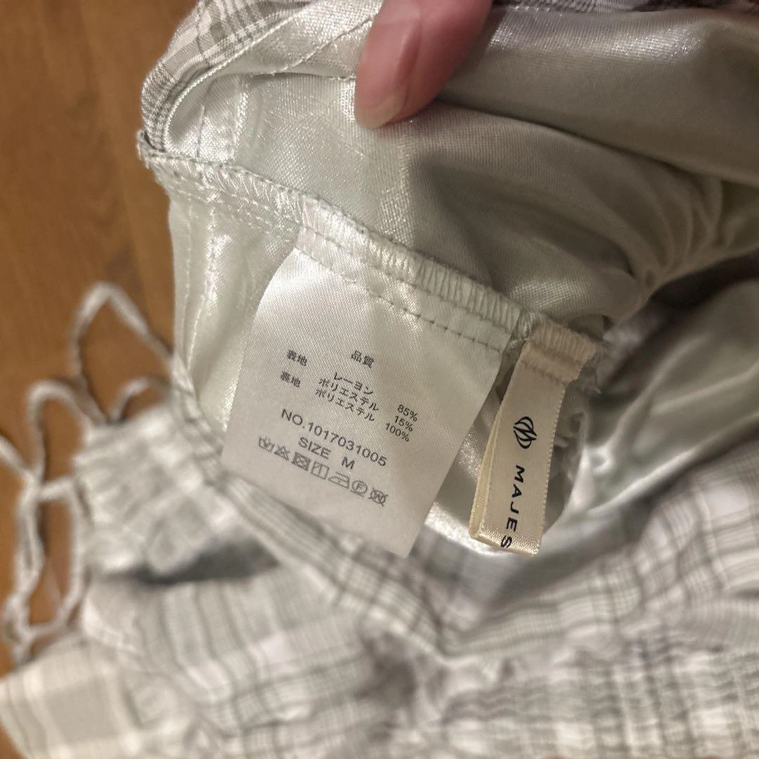 MAJESTIC LEGON のシャーリングチェックブラウス(グリーン・Mサイズ)です。 柔らかいシャーリング加工とチェック柄が上品で、カジュアルにもきれいめにも使いやすいブラウスです。 一枚でコーデが決まりやすく、季節の変わり目〜春先にもおすすめです。 【ブランド】MAJESTIC LEGON 【カラー】グリーン/チェック柄 【サイズ】M 【デザイン/仕様】シャーリング、ブラウス型、ややフェミニンな雰囲気 【状態】目立つ汚れ・大きなダメージなし ご質問などあればお気軽にどうぞ。