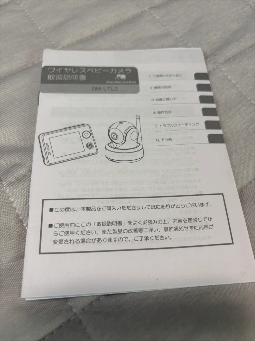 2022年購入 グッドデザイン賞 キッズデザイン賞受賞 部屋が真っ暗でもはっきり見えますし、音質も良かったです。 動作確認済 問題なし ワイヤレス接続のベビーモニター、 音楽再生機能付き。 - ブランド: mamasuma 株トリビュート - 商品名: ワイヤレスベビーカメラ - ディスプレイ: モニター付き - 操作ボタン: 音量調整、音楽再生ボタンあり - 接続方式: ワイヤレス ■ 付属品 ■ ・カメラ ・モニター ・ACアダプター(充電器)×2 ・取扱説明書 ※専用の箱はありません。 ※中古品ということをご理解いただきますようお願い致します。