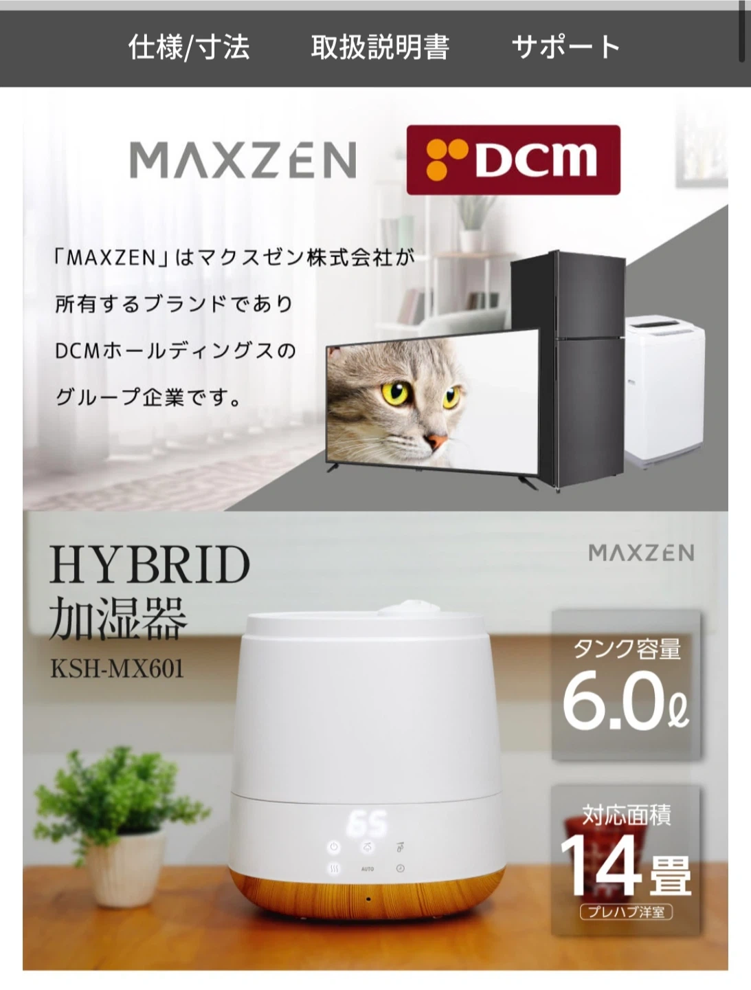 6.0L ハイブリット式加湿器 白 ホワイト 木目調 型番KSH-MX601-W 卓上 コンパクト加湿器 ホワイトと木目調のデザインで、オート機能付きの置き型加湿器です。購入しましたが使用していないのでお譲りします。袋に入れて自宅保管していたので汚れなどはございません!購入は一年前の冬です 型番名KSH-MX601-W JANコード4571495430819 商品CD2028152818173 電源AC100V 50/60Hz 消費電力200W(超音波/25W:加熱ヒーター/175W) 加湿量加熱ボタン-ONレベル3 550ml/レベル2 450ml/レベル1 350ml 加熱ボタン-OFFレベル3 300ml/レベル2 220ml/レベル1 120ml 外形寸法約272(幅)×220(奥行)×299(高さ)mm 質量約2.2kg タンク容量約6.0ℓ コード長約1.4m 付属品リモコン、水槽クリーニングブラシ - ブランド: MAXZEN - タイプ: 置き型加湿器 - 機能: 自動運転機能 - 操作ボタン: 電源、加湿、オート、タイマー - デザイン: ホワイトと木目調のコンビネーション 手渡し場所 中央線 高円寺駅徒歩1分 --- 東京都 杉並区 中野区 世田谷区 高円寺 阿佐ヶ谷 荻窪 西荻窪 中野 新宿 三鷹 吉祥寺 ---