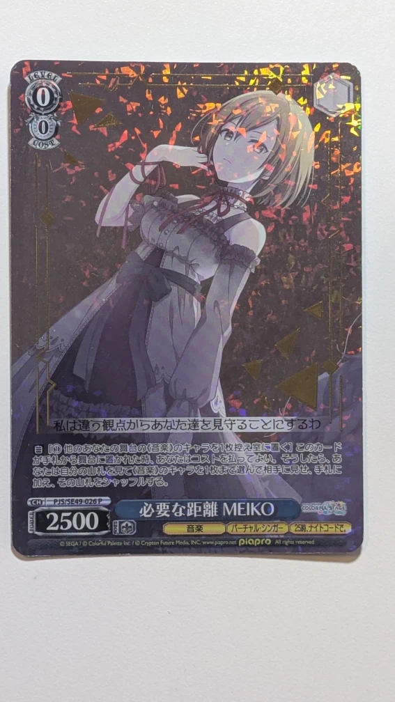 ヴァイスシュヴァルツのカード(MEIKO)です。 ・カード名:必要な距離 MEIKO ・状態:外袋は開封していますが、     室内にあったため傷もなく綺麗です✨     多少の湾曲あり(3枚目) ご不明点があればお気軽にお尋ねください。