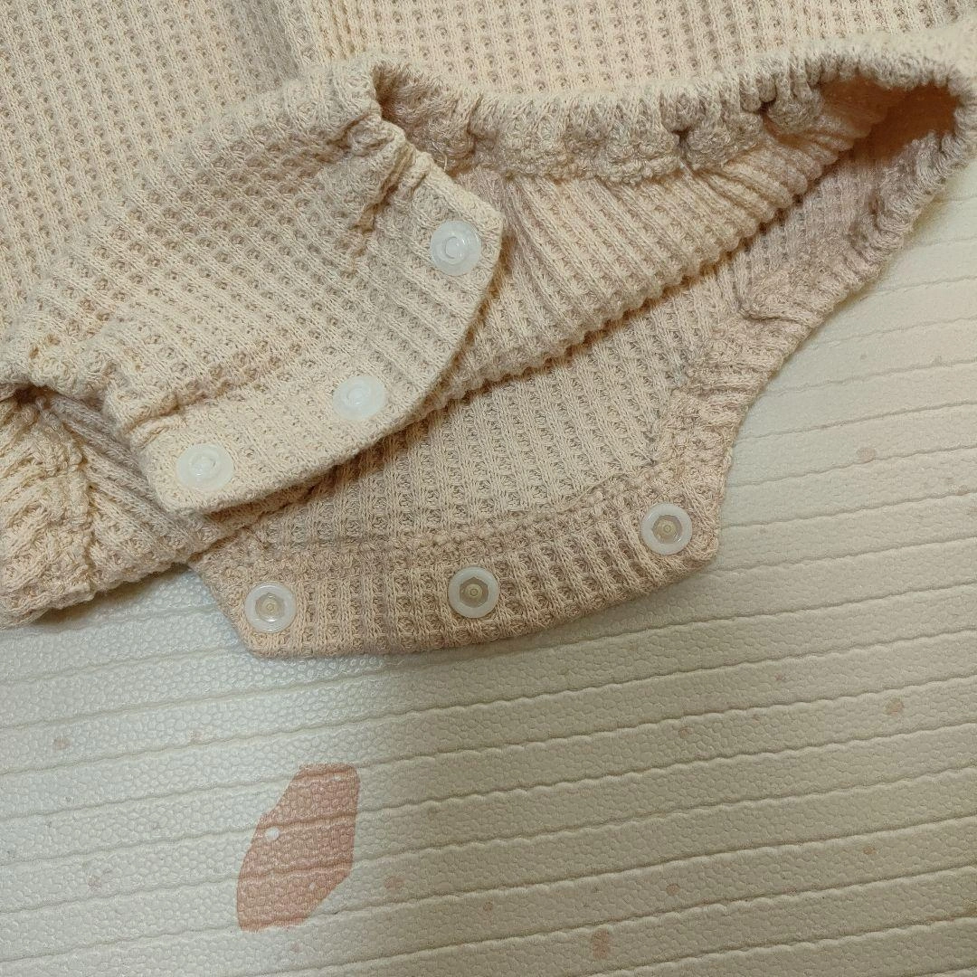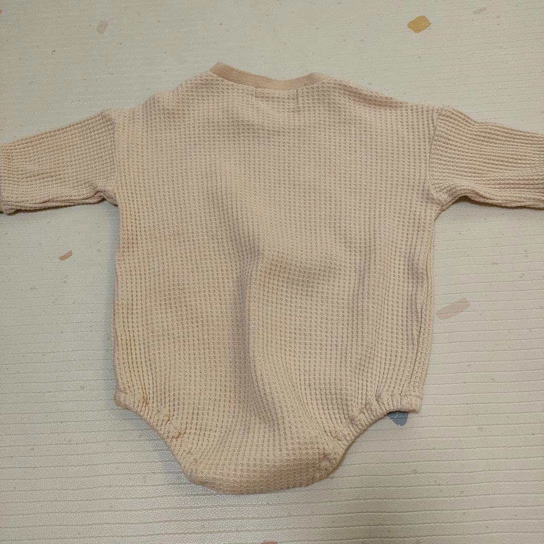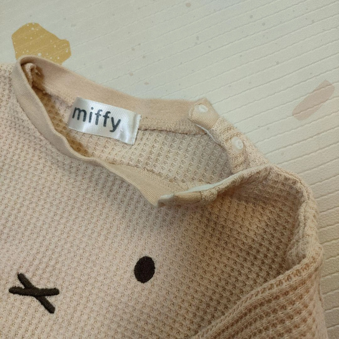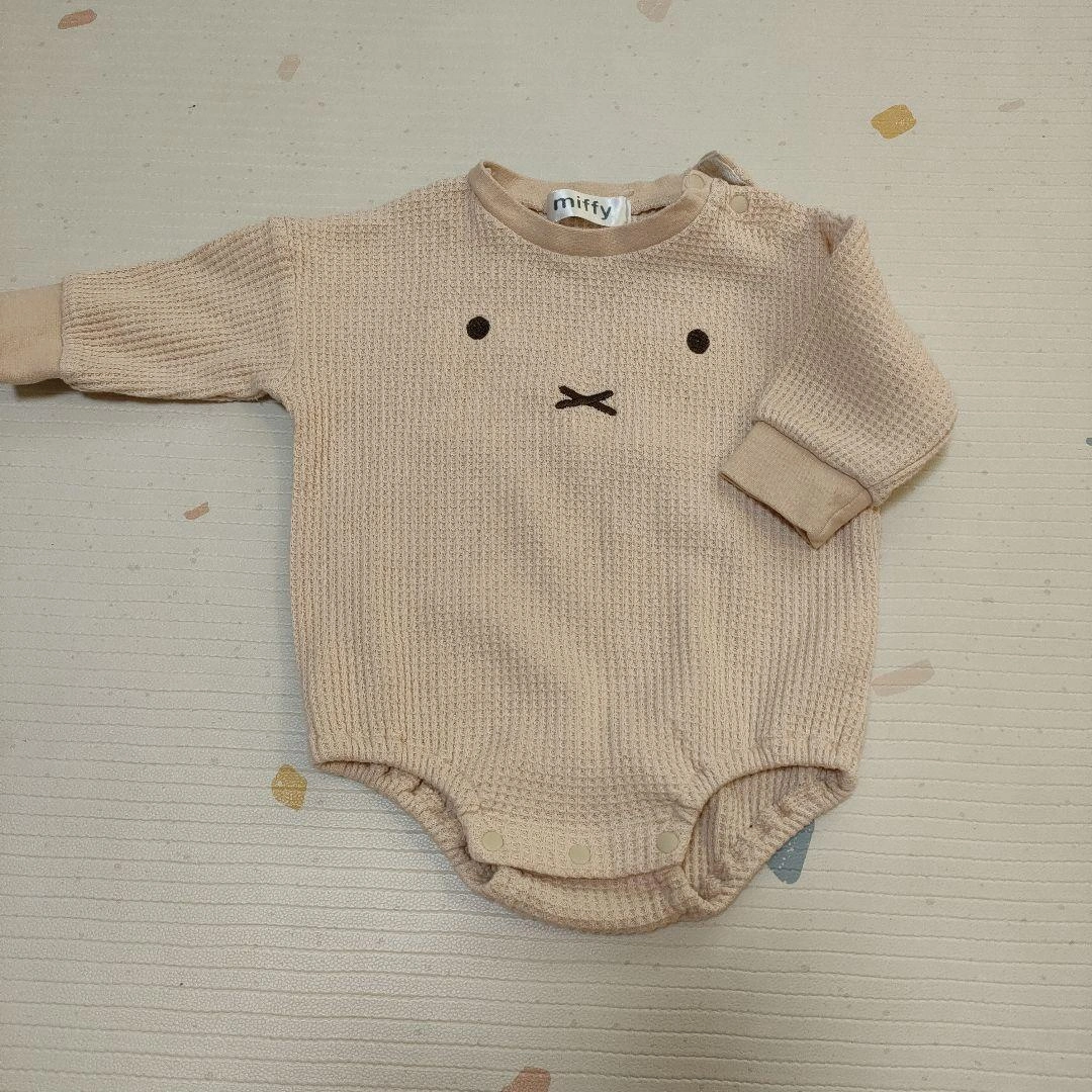 着用数回 汚れ無し 記名無し このロンパースは、人気のあるキャラクター「ミッフィー」のデザインが施されています。可愛らしい動物の顔が特徴です。 ワッフル生地を使用しており、通気性が良く、肌触りも優しいです。長袖デザインで、季節を問わず着用可能です。 スナップボタンが付いているため、着脱が簡単です。おむつ替えもスムーズに行える設計になっています。 - ブランド: miffy - 色: ベージュ - デザイン: 動物顔(ミッフィー) - 素材: ワッフル生地 - 留め具: スナップボタン - 袖の長さ: 長袖 ご覧いただきありがとうございます。