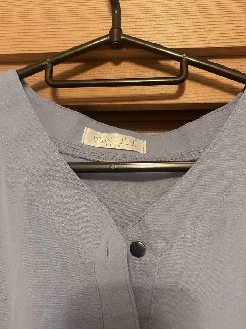 ご覧いただきありがとうございます。 こちらは miniministore(ミニミニストア) シャツワンピース/カラー:ブルー です。 •色:ブルー(落ち着きのあるくすみブルー系)  •サイズ:S(Mの私でも着られるくらいです) •デザイン:ロング丈・ボタン付きシャツタイプ。羽織りとしても1枚でワンピースとしても着用可。  •素材・特徴:透け感ありの軽めの素材。サラッとして季節を問わず使いやすい。  •状態:目立った傷や汚れなし(確認済み) •1枚でコーデが完成するため忙しい朝や旅行時にもぴったりです。 ご質問等ございましたらお気軽にコメントください。