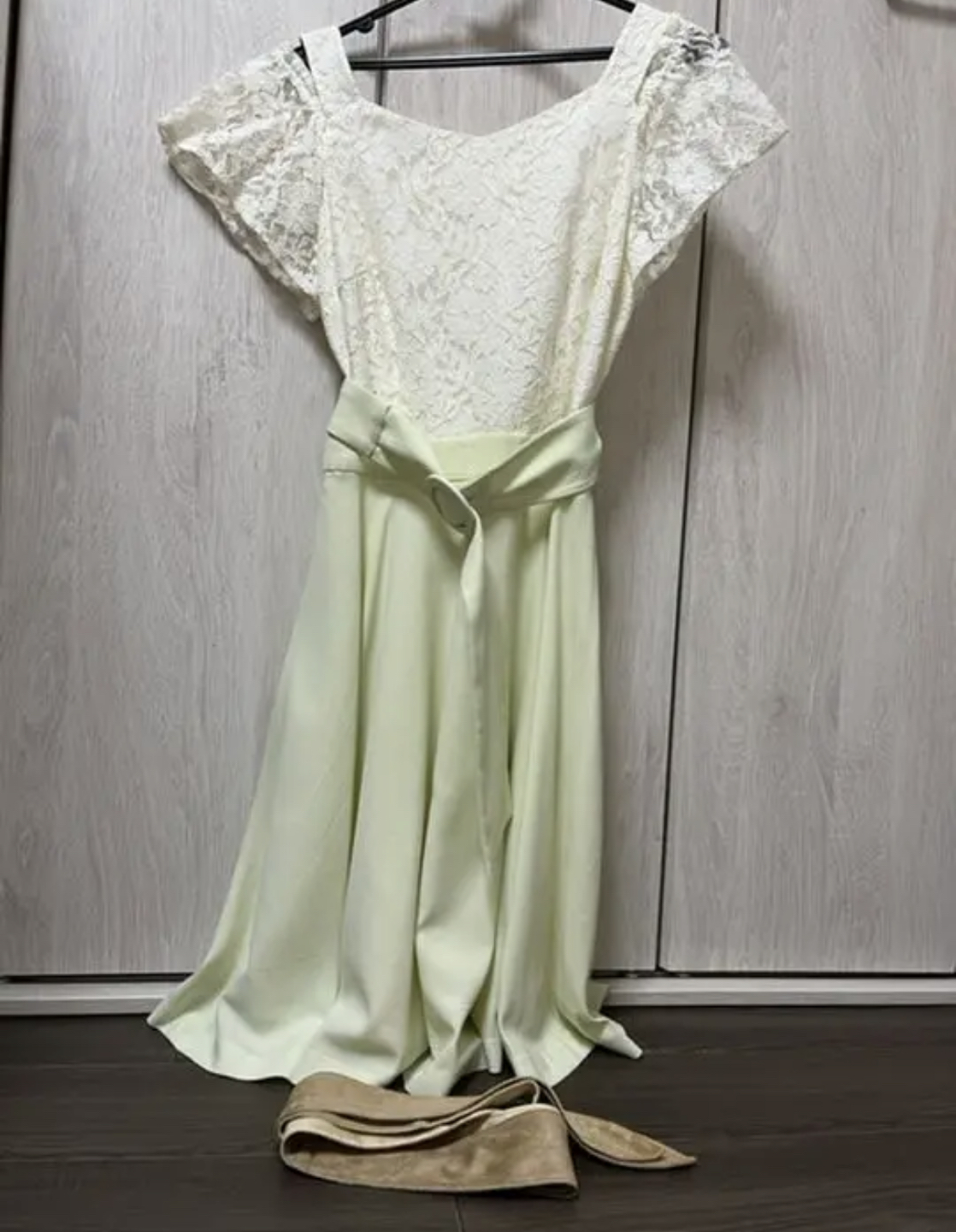 ひざ丈ワンピース(158cmでひざ丈くらいです) 肩部分はオフショルにも、 ボタンを止めて半袖タイプにもなります。 ベルトはグリーンとブラウンの2種類ついています。 目立った傷や汚れは特にないですが 色褪せ等はあります。 あくまで中古品ですので、 ご理解いただける方よろしくお願いします( ˊᵕˋ* ) ※他のフリマサイトでも出品中のため 購入前にコメントに一言よろしくお願いします!!
