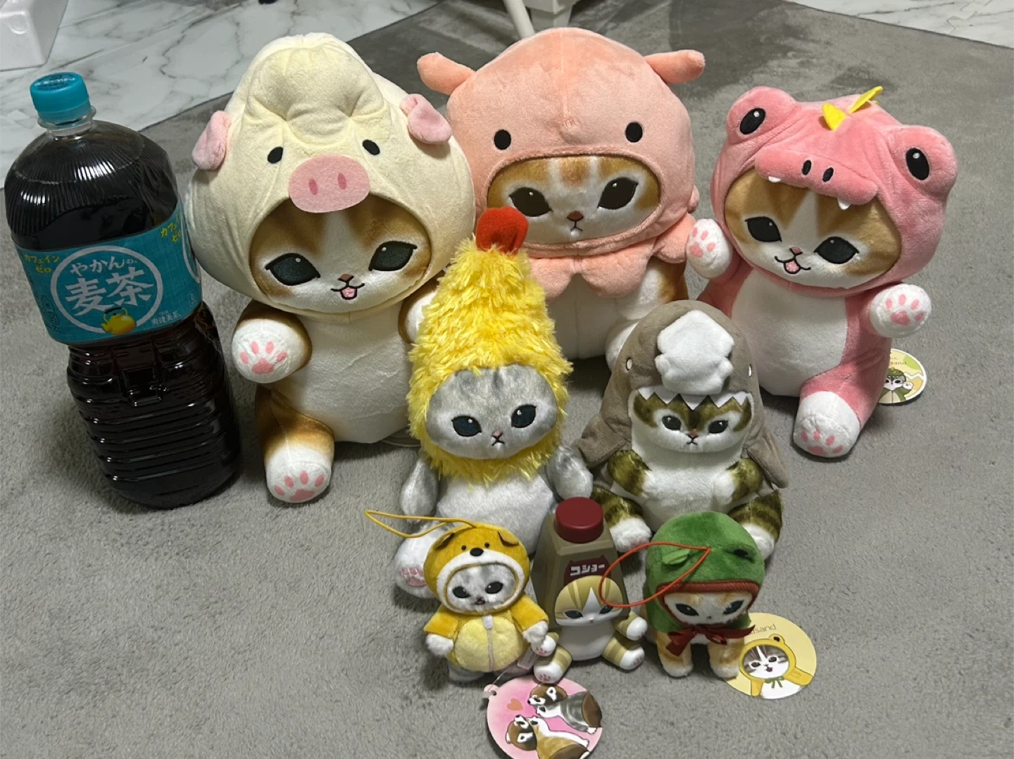 mofusandのぬいぐるみセットです ・種類:ぬいぐるみ ・デザイン:いろいろ ・状態:全体的にきれい サイズ感は2リットルの麦茶を参考にして下さい下さい。 中古品であることご了承ください