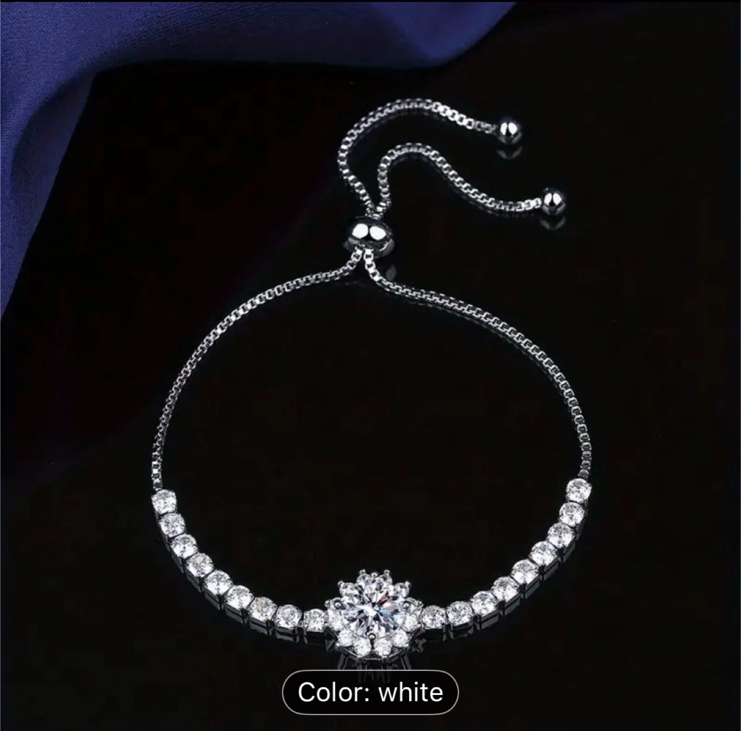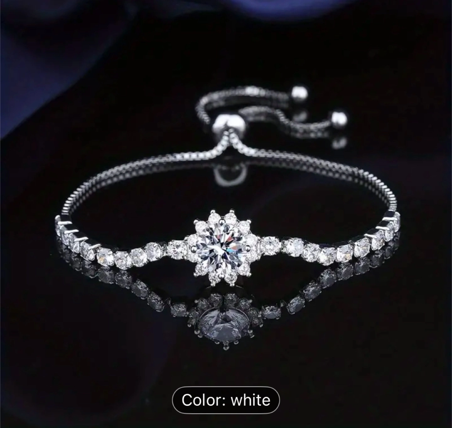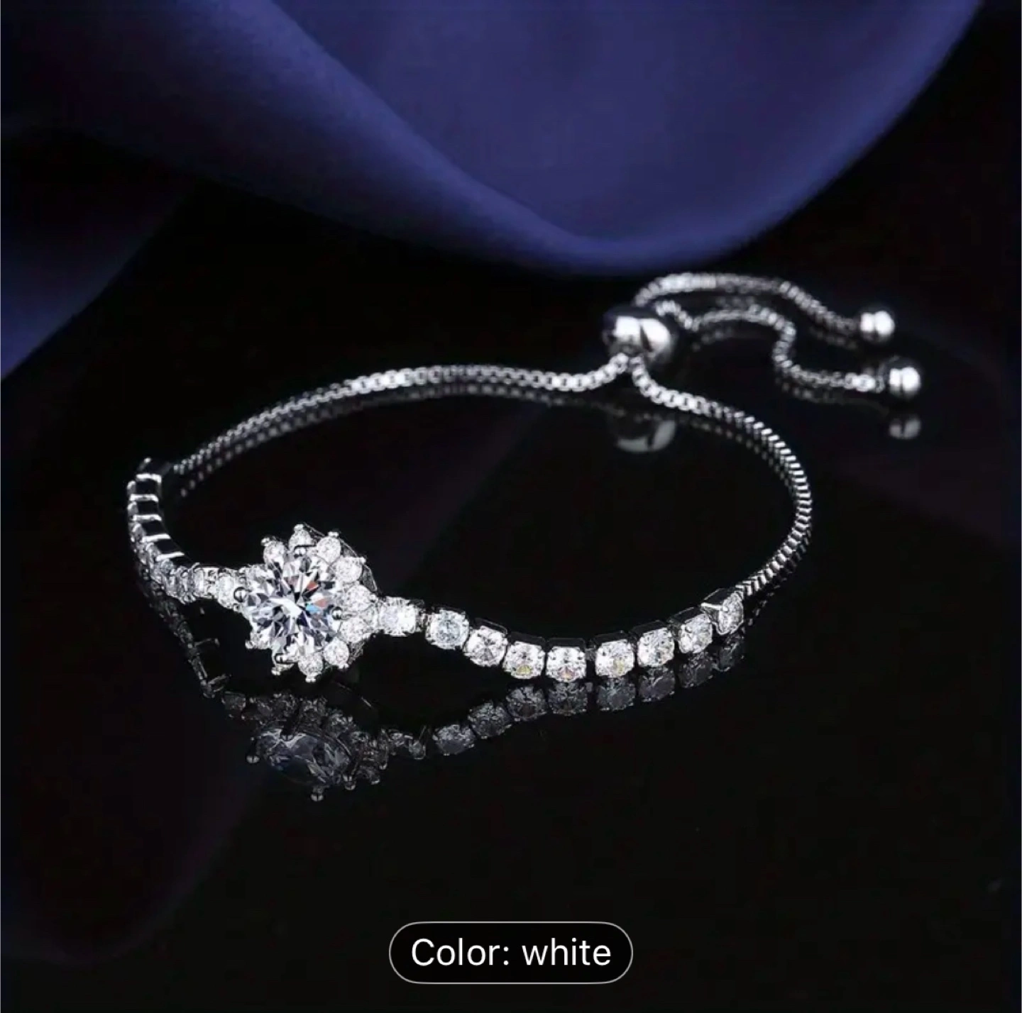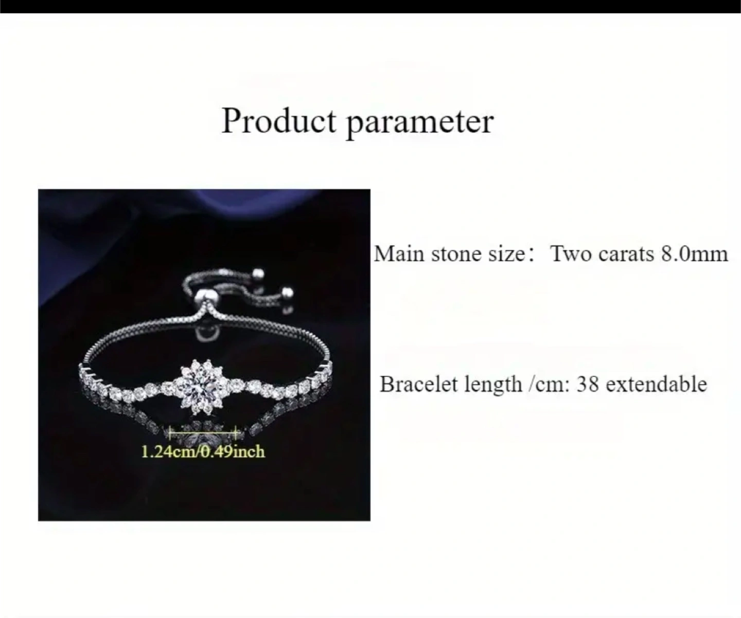 Elegant Moissanite Sunflower Adjustable Bracelet, Luxury Silver-Plated, 2 Carat Center Stone with Moissanite Accents, Versatile for All Seasons & Occasions - Ideal for Halloween & Daily Wear