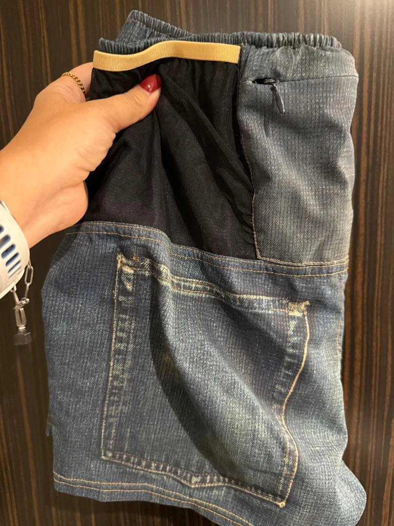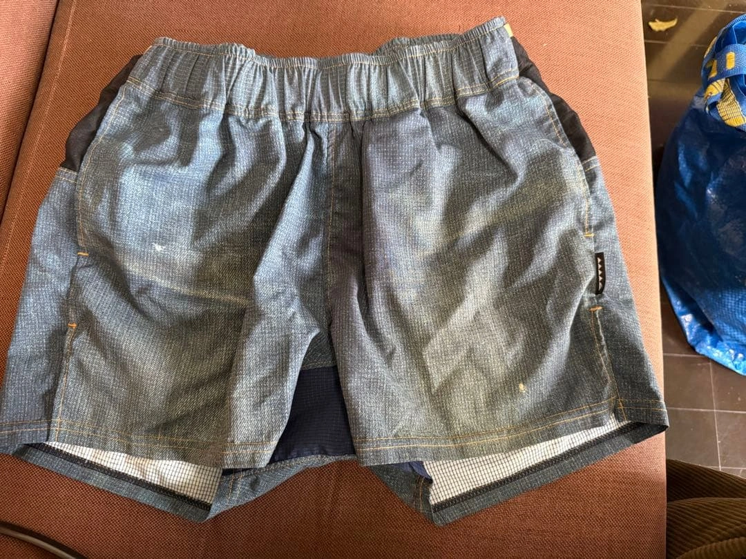 デニム調デザインのランニングパンツです。ポケット付き。 - 色: デニム調 - デザイン: バックポケット付き - 特徴: 内側にショーツ付き ご覧いただきありがとうございます。 一時期MMAのランニングウェアを購入しており、着用しないまま自宅保管していた物です。こちらも着用した記憶がないので新品か、1度着用程度かと思います。 写真が明るく写っておりますが、4枚目の写真の色が実物に近いです。 ご希望の方はお気軽にご連絡ください。
