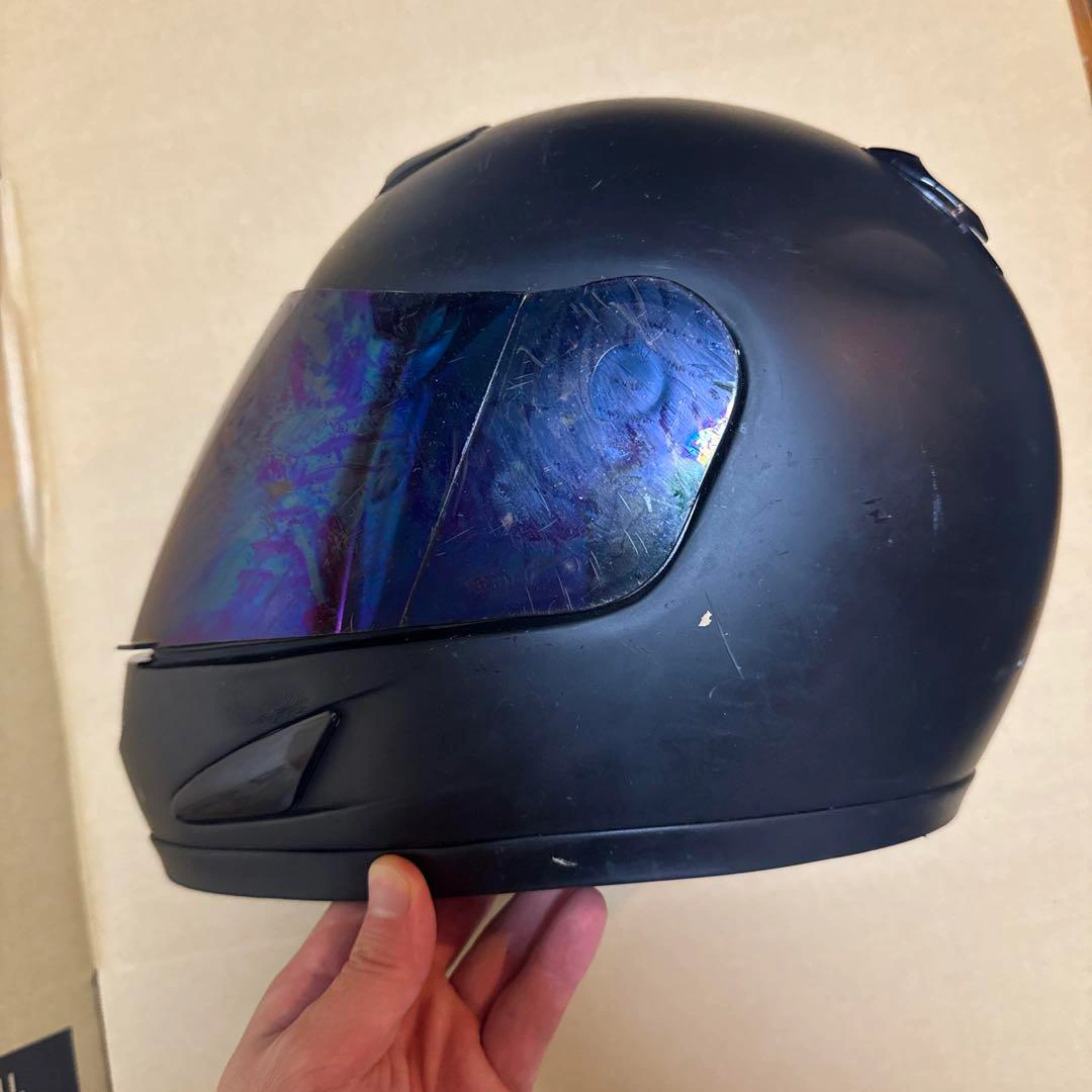 ご覧いただきありがとうございます。 バイク用フルフェイスヘルメット NEO-RIDERS(ネオライダーズ) MA03 の出品です。 ✅商品詳細 •メーカー:株式会社EST(NEO-RIDERS) •モデル名:MA03 •タイプ:フルフェイスヘルメット •サイズ:L •カラー:ブラック系(詳細は写真にてご確認ください) ✅商品の状態 •中古品につき全体的に使用感があります。 •外観に小傷あり(画像にてご確認ください)。 •割れや使用に支障のある大きなダメージは見られません。 •内装は現状渡しとなります。 ※使用頻度は不明です。中古品のため、細かい点を気にされる方はご遠慮ください。 ✅おすすめポイント •SG規格適合品で安心してご使用可能 •コスパに優れた定番フルフェイスモデル