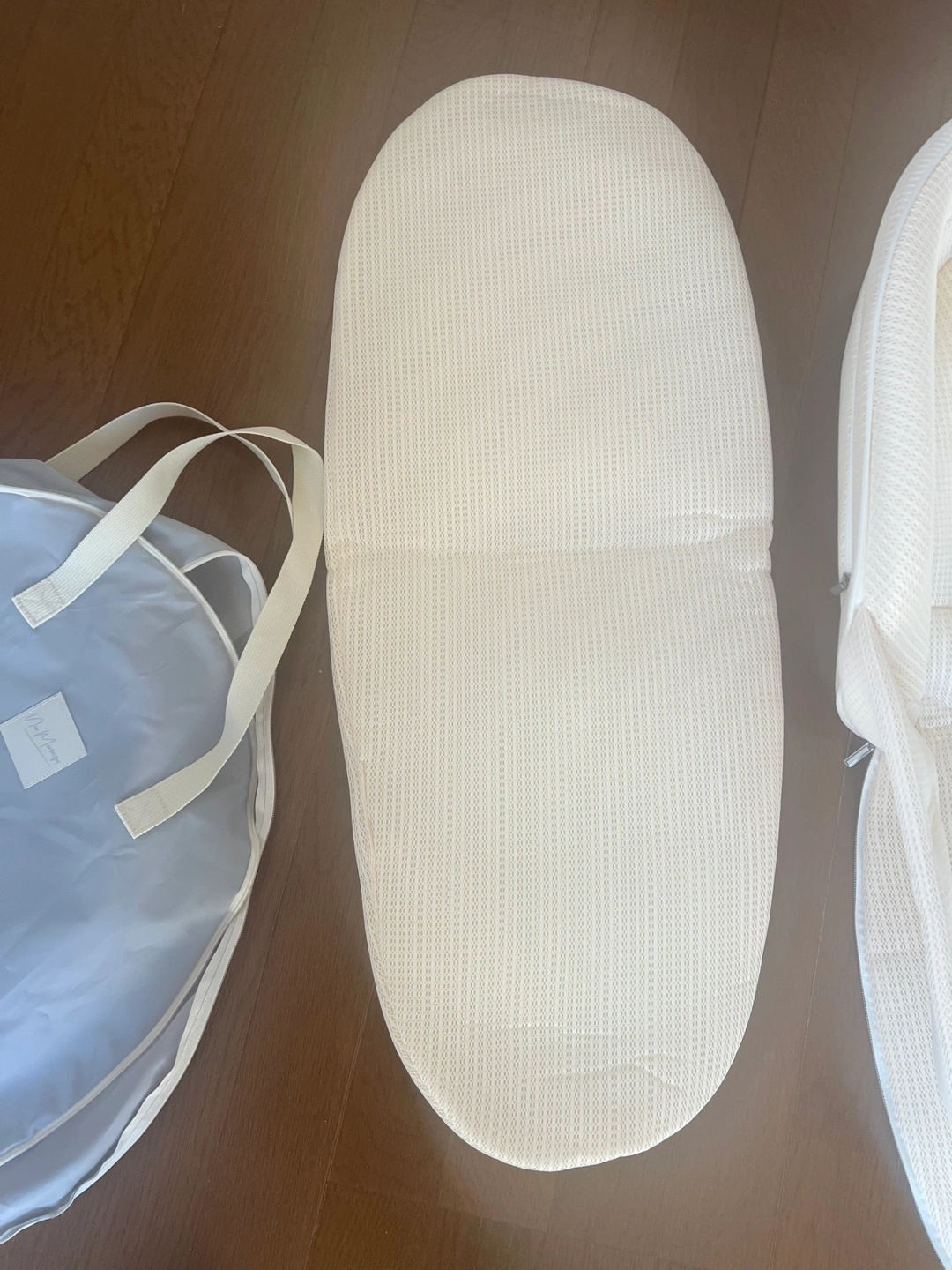 1年半前に購入したneomamaismさんのベッドインベッドです。 使っていたのは新生児期だけだったので、ほとんど汚れておらず、状態は良いです。ただ一箇所だけ、子供がつけたマッキーの線が入ってますので、画像をご確認ください。 商品状態:室内保管・一箇所だけ汚れあり。洗濯済み。 ブランド:neomamaism 素材:ベッドカバー&クッションパッド:3Dエアーメッシュ(ポリエステル100%)ベッドフレーム:PPプラスチック100% サイズ:開いた時:縦90cm × 横幅 47cm ×高 さ18cm 内側:縦83cm × 横幅40cm × 高さ8cm 閉じた時:高さ43cm×幅 48cm×奥行き 20cm 持ち運びしやすいので、実家帰省用や寝室以外の部屋用とかに使ってもいいかもです。 収納袋もついてます。 中古品であるということをご了承の上、ご購入ください。 ご不明点等ございましたらご連絡ください。