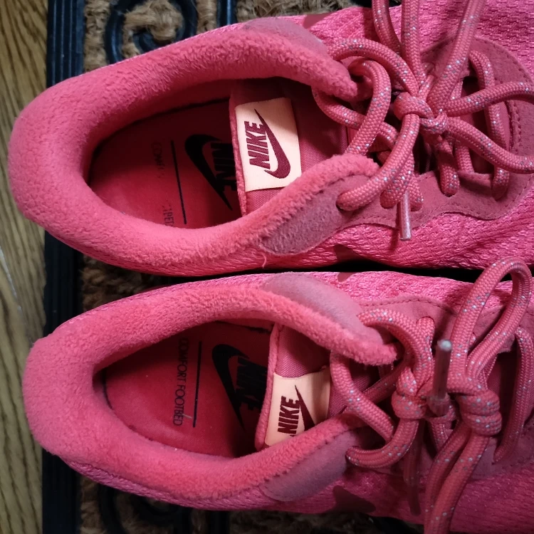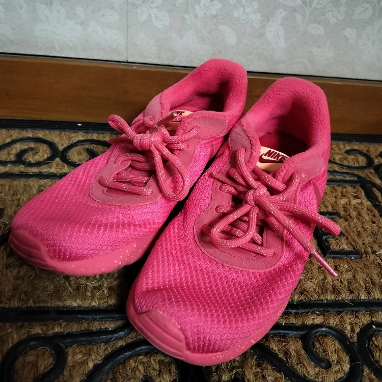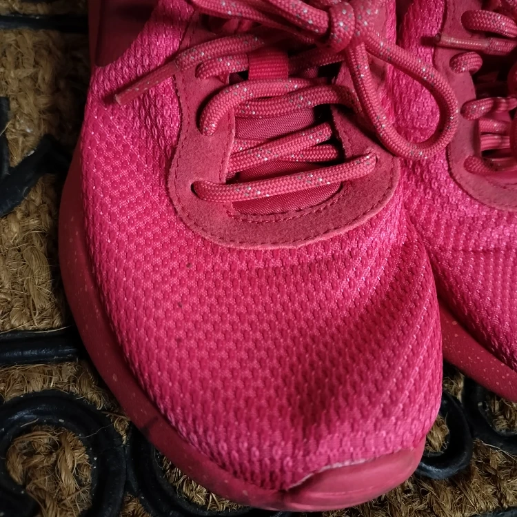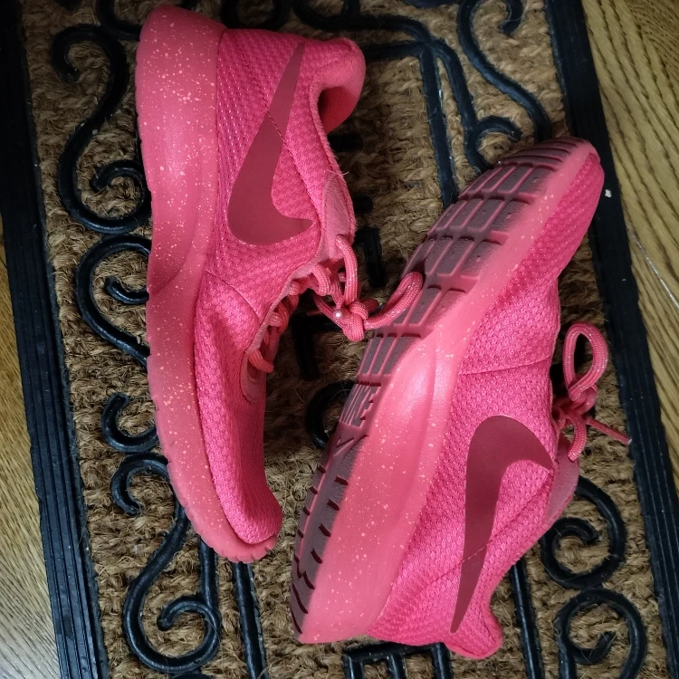 メッシュ素材の蛍光ピンクスニーカー、スプレット模様のソールが特徴。 - ブランド: Nike - カラー: ピンク - デザイン: スニーカー - 特徴: メッシュ素材 - ソール: スプレット模様 右足前、ソールに黒い染みがありますが、洗えば消える可能性はあります。 商品の状態はお写真で把握お願い致します。 長期保管の為、ご理解いだける方のみでお願い致します。 ご覧いただきありがとうございます。 ランニング ジム トレーニング 可愛い お洒落 スニーカー 運動靴