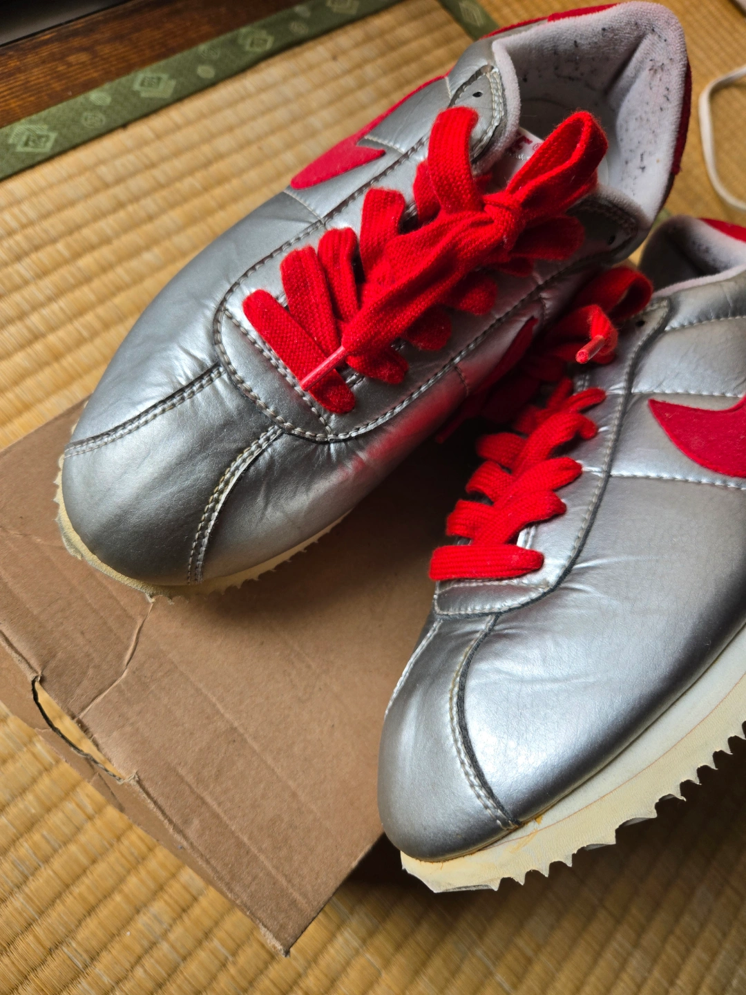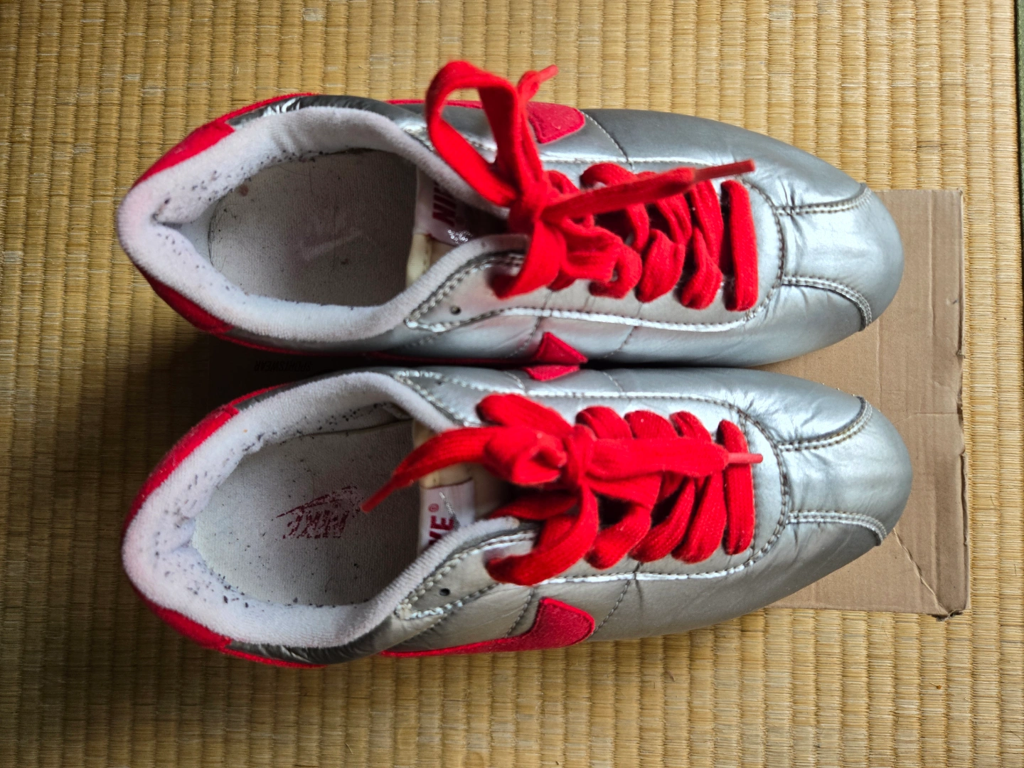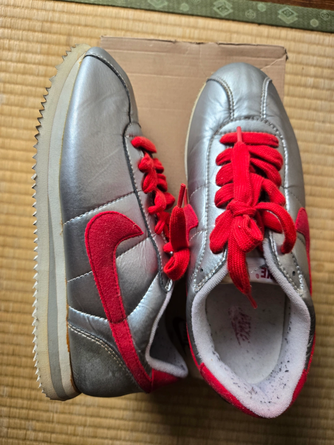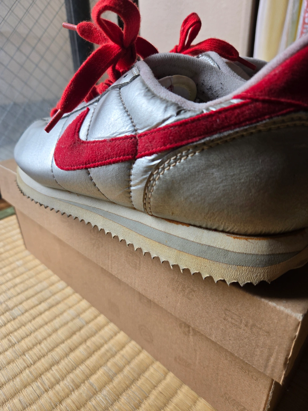 Nike men's SECOND HAND USED ●【希少】97年製NIKE LEATHER CORTEZ ナイキ レザーコルテッツ サイズ26.5cm 銀赤 色MET SILVER/CITY RED ウルトラマン 靴と同じ色の高品質の靴ひも*赤 靴底はまだ良好な状態です。 colors:Silver&red japan 26.5cm 8.5us 42eur *****used hand still good condition. with another box***** drop at Ayase St.only thank you.***** message