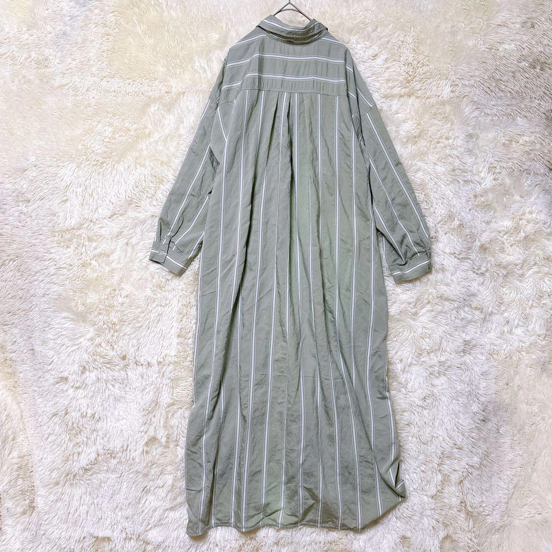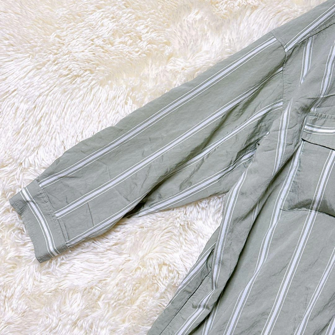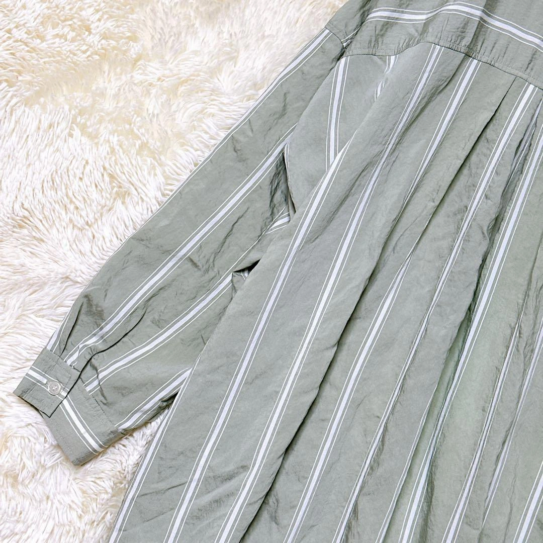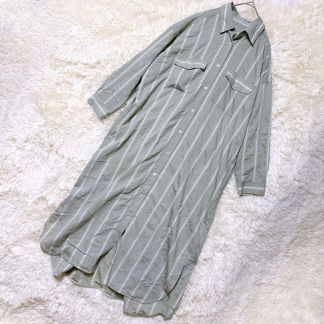 あたたかさOFUONのストライプデザイン長袖シャツワンピースです。前面に2つのポケットがあります。詳細は写真にてご確認ください。 サイズ:40(Lサイズ相当) 着丈:121cm 身幅:61cm 肩幅:57cm 袖丈:43cm 素人採寸のため、多少の誤差はご了承ください。 色:グリーン、グレー ご質問等ありましたら、購入前にお願いいたします。 ID n15 カラー···グレイ系 柄···ストライプ 季節···オールシーズン 汚れ・破れ・臭いなど···なし