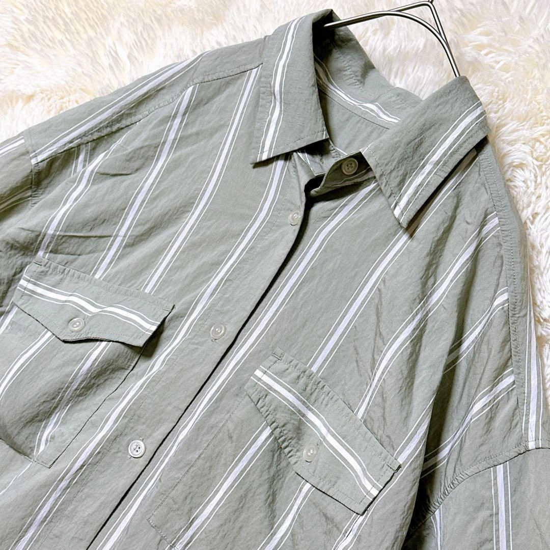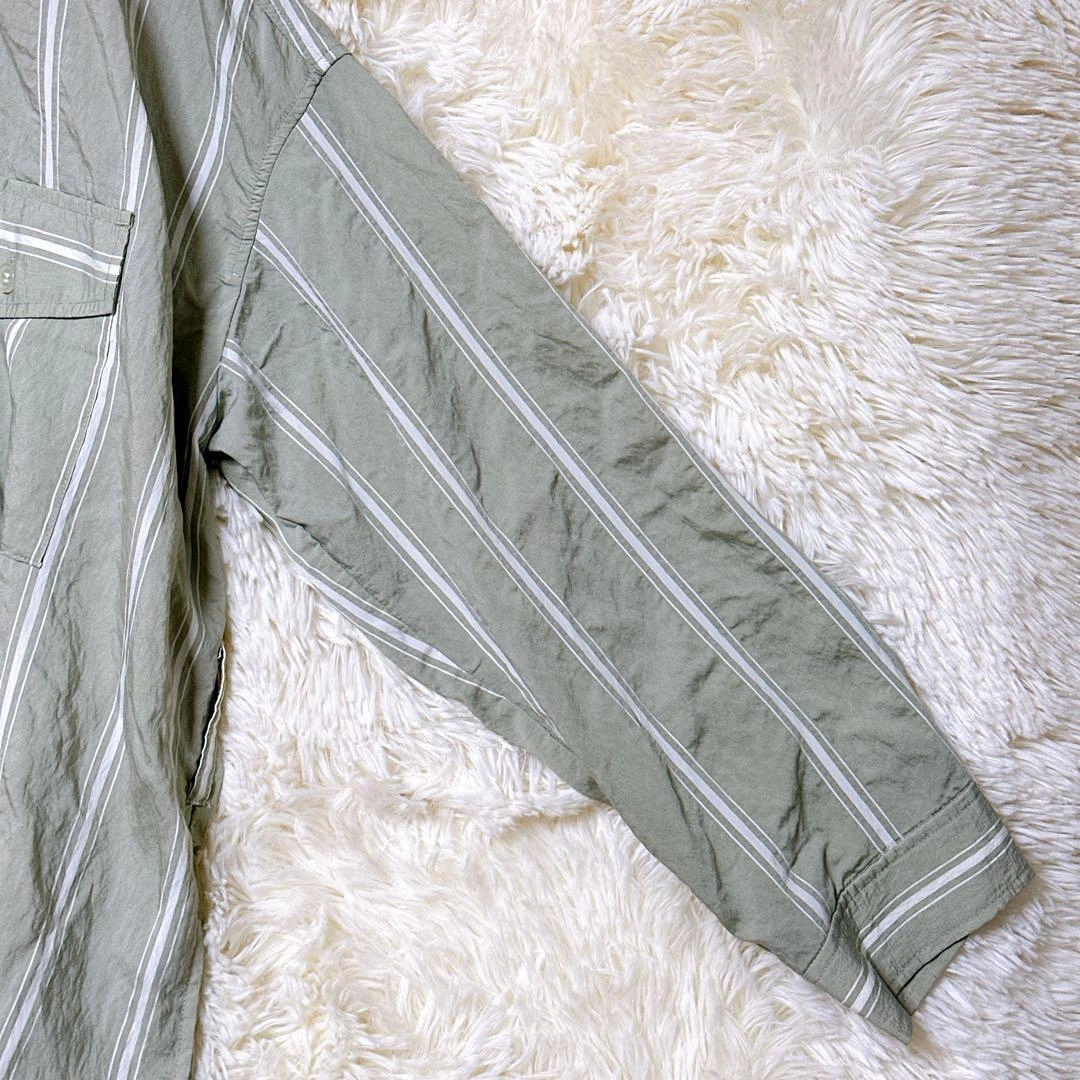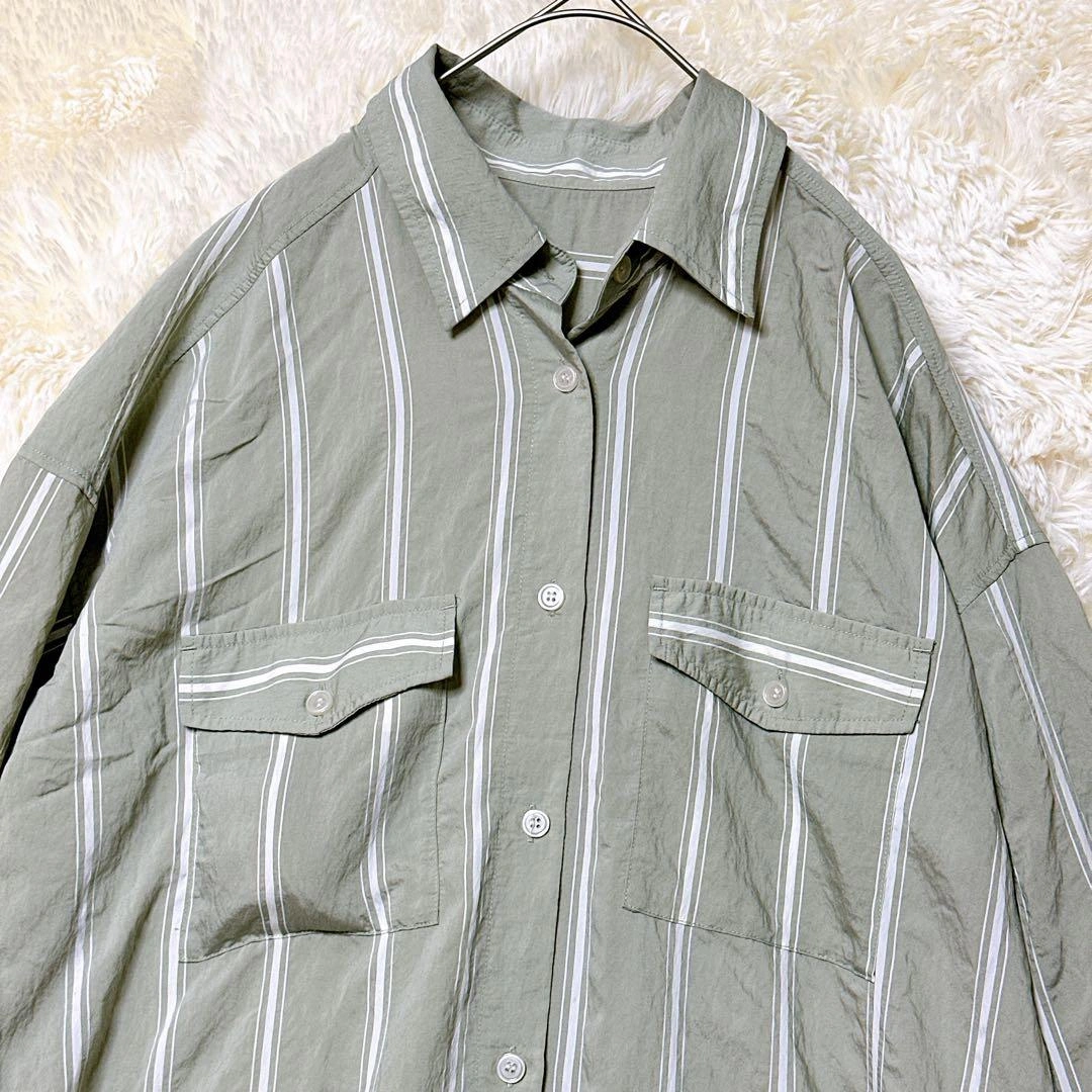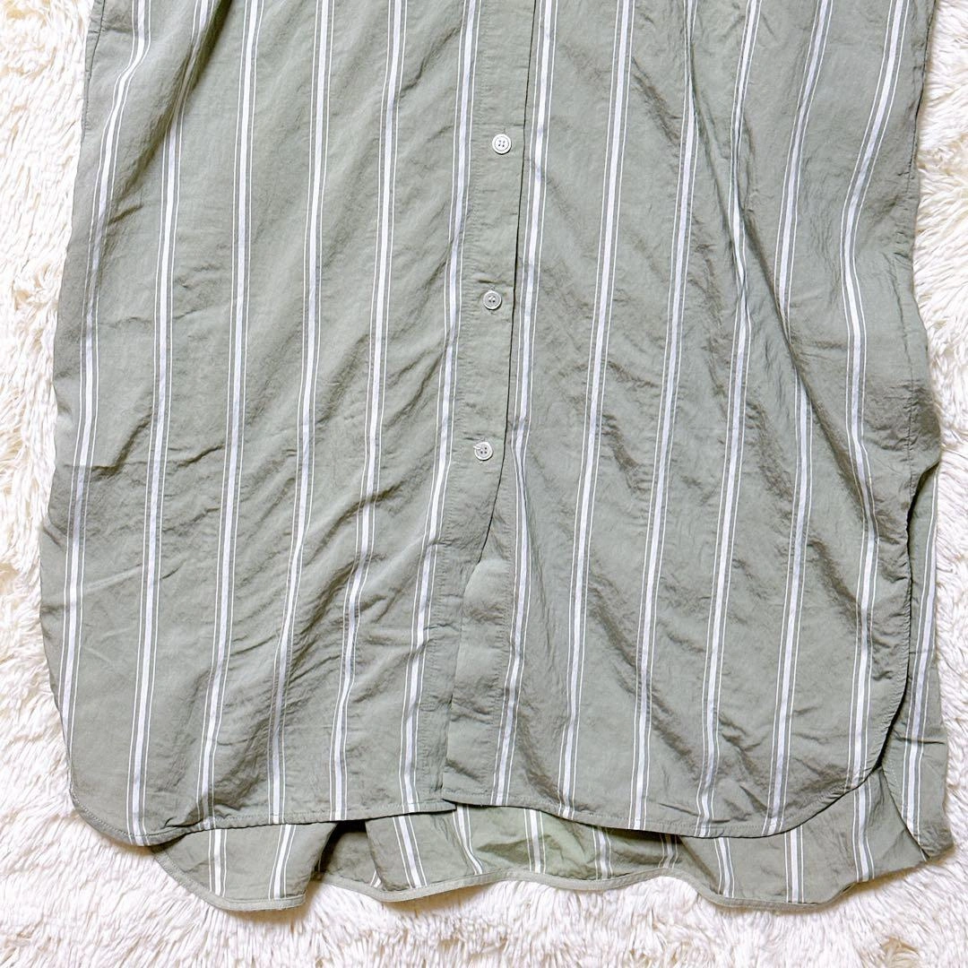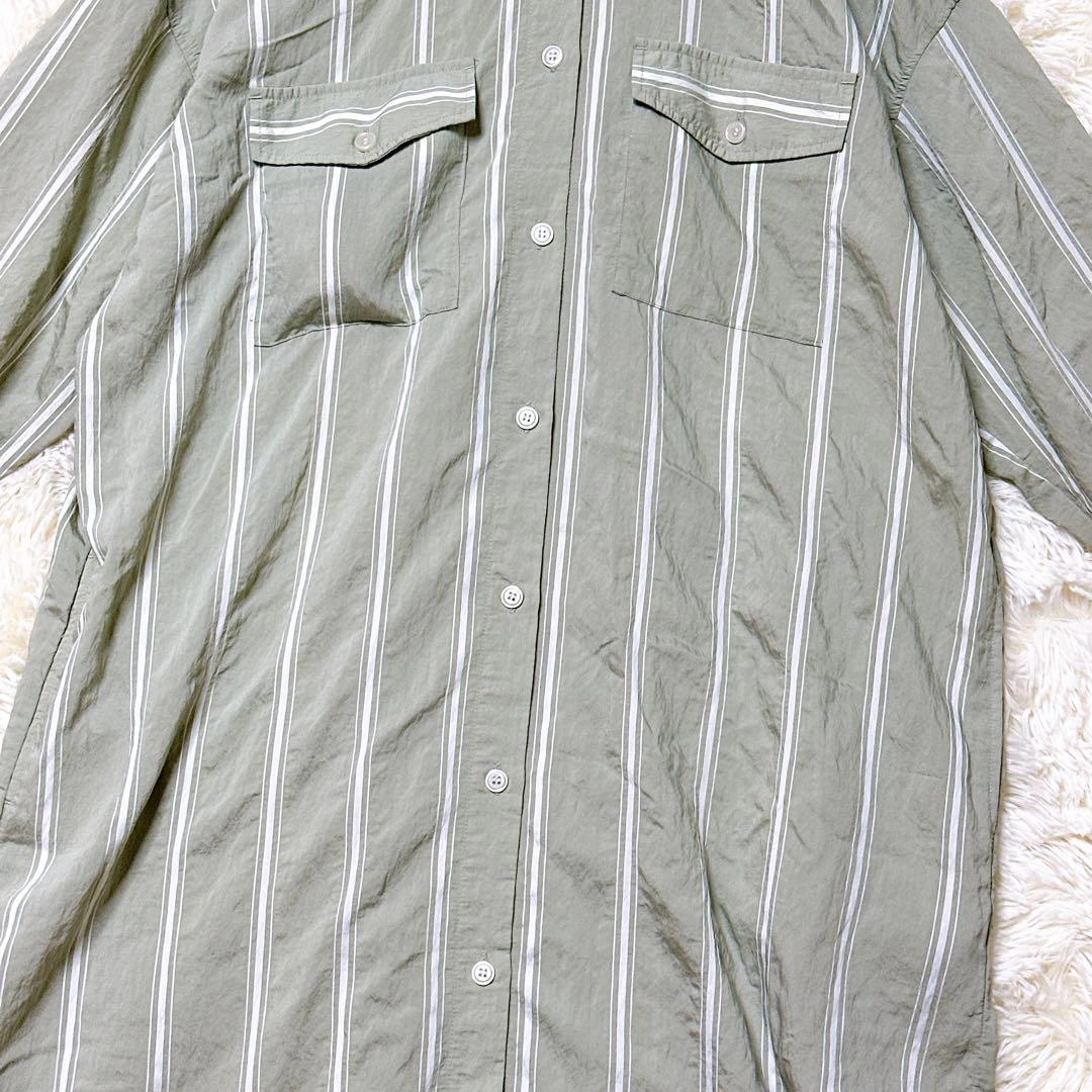 あたたかさOFUONのストライプデザイン長袖シャツワンピースです。前面に2つのポケットがあります。詳細は写真にてご確認ください。 サイズ:40(Lサイズ相当) 着丈:121cm 身幅:61cm 肩幅:57cm 袖丈:43cm 素人採寸のため、多少の誤差はご了承ください。 色:グリーン、グレー ご質問等ありましたら、購入前にお願いいたします。 ID n15 カラー···グレイ系 柄···ストライプ 季節···オールシーズン 汚れ・破れ・臭いなど···なし